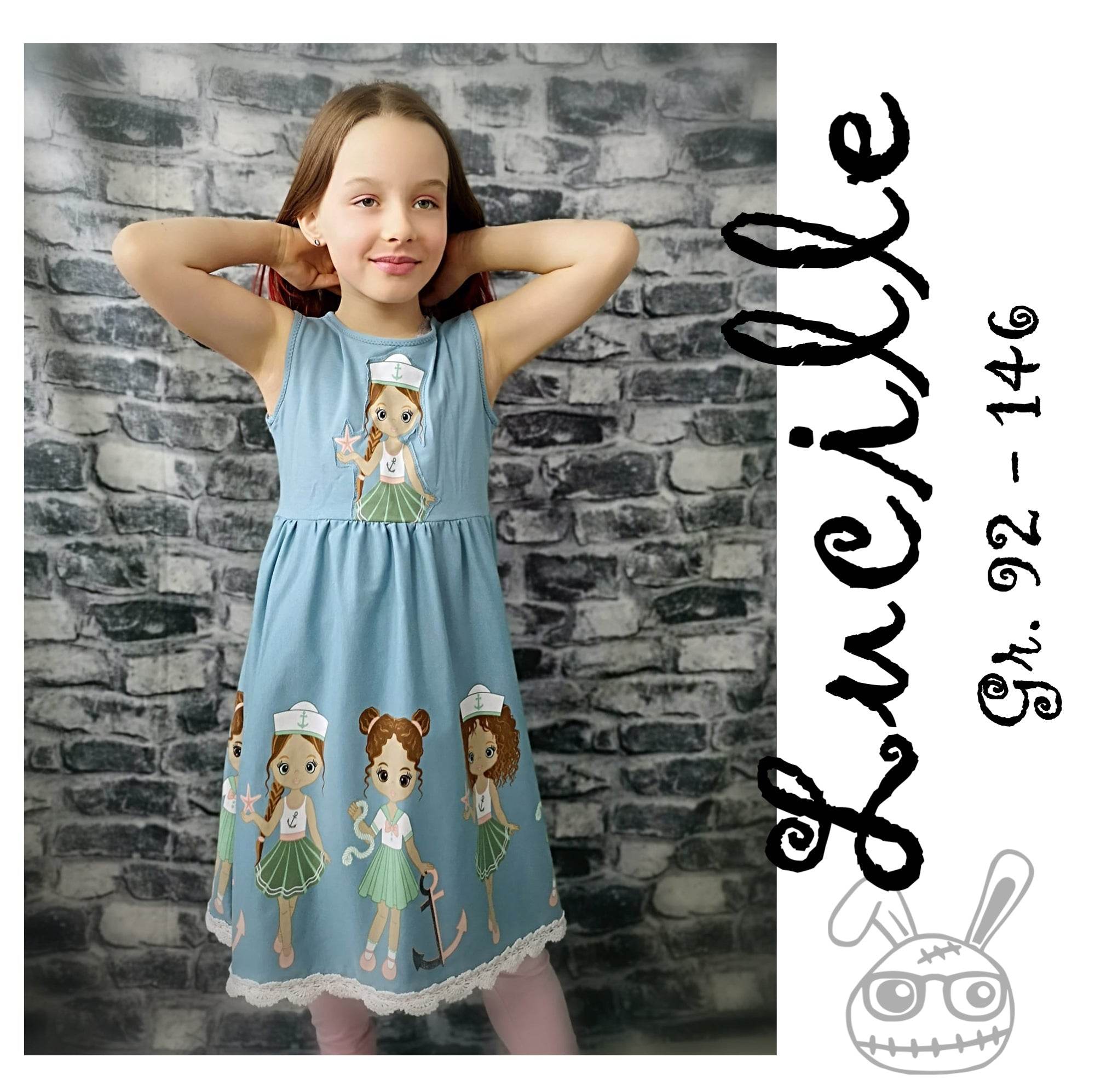 Lucille ist ein süßes und schnell genähtes Sommerkleidchen für kleine Damen. Das Oberteil ist im Shirtstil gehalten und wird aus bequemen Jersey genäht. Der Rock kann sowohl einlagig, als auch zwei- oder sogar 3lagig genäht werden. Der Rock ist auf Webwaren ausgelegt. Du kannst deine Lucille also aus mehreren Lagen Chiffon nähen oder Stoffe wie z.B. Popeline, Georgette ,Tüll und Spitze miteinander kombinieren. Wenn`s mal ganz schnell gehen soll, dann kann der Rock auch aus Jersey genäht werden. Außerdem hat Lucille eine angenehme Länge, so dass beim Toben der Boppes nicht plötzlich raus blitzt... Ob für kleine Prinzessinen oder Räubertöchter … Für den Spielplatzbesuch oder eine bevorstehende Hochzeit...Lucille macht bei allem mit ! *