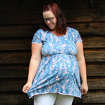 -drei verschiedene Rockvarianten in drei verschiedenen Längen -der geraffte Rock hat verschiedene Saumsabschlüsse -drei Ausschnitte -Wickelkapuze oder Wickelkragen -versteckte Taschen - Extra Sommeroberteil - Belege für die Halsausschnitte - Anleitung für Stillvariante - auch als Umstandskleid/Tunika tragbar