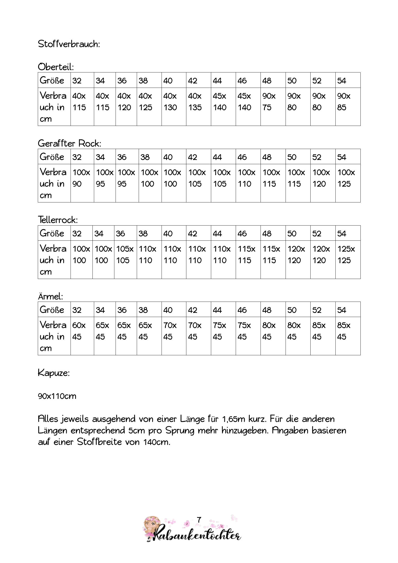 „Luckydress“ wird nach Konfektionsgröße genäht. Zur Optimierung der Passform enthält dieses eBook aber eine Maßtabelle, nach der ich auch empfehle, zu nähen. So kannst du den Schnitt perfekt auf deine Proportionen abstimmen. <3