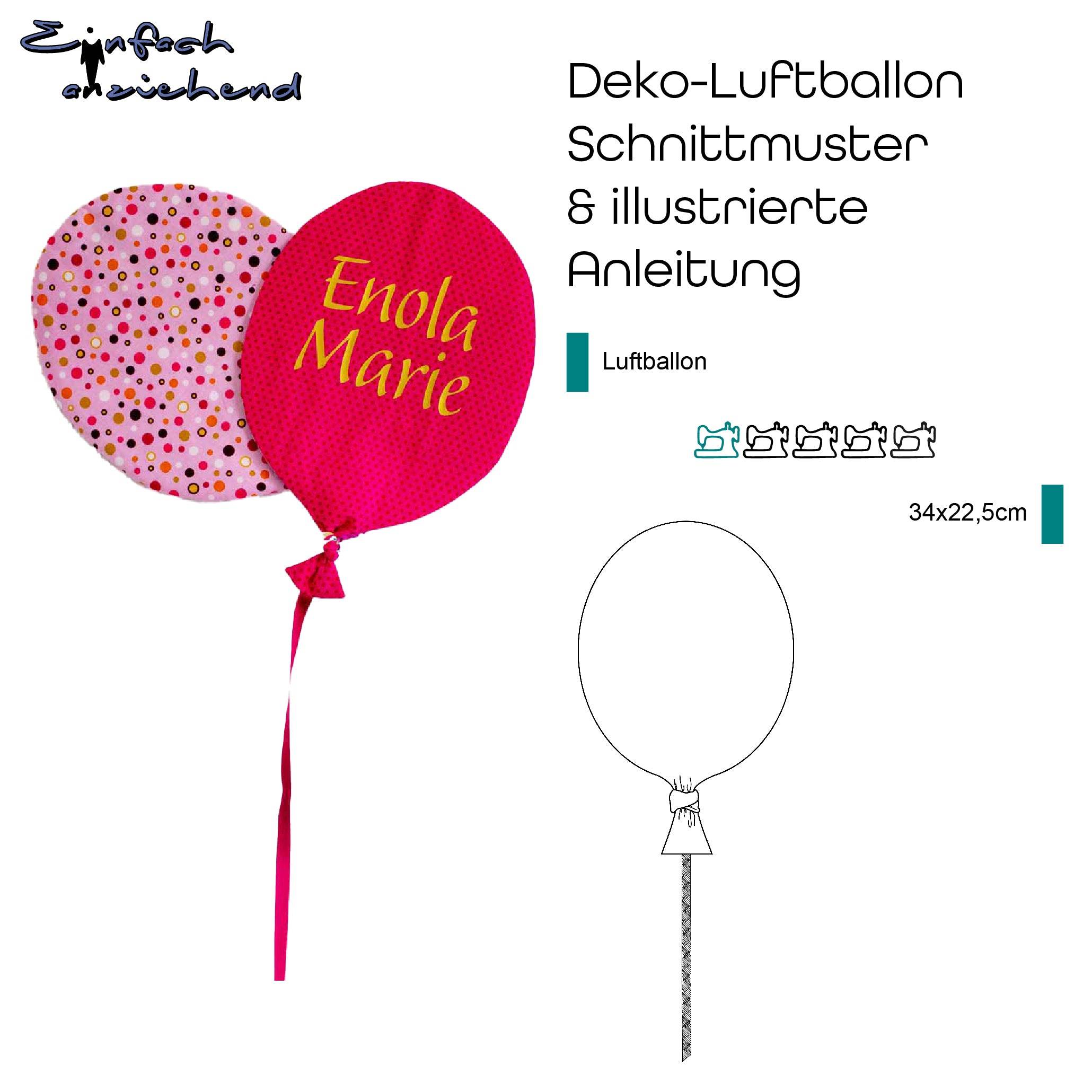 Dieser Schnitt für einen Luftballon/Ballon aus Stoff und Füllwatte ist eine absolut zuckersüße (Kinder-) Zimmerdeko. Er lässt sich auch super bemalen, beplotten, besticken usw.. Ein tolles Projekt für Nähanfänger und ideal als Geschenk zur Geburt oder ähnlichem oder sogar als Partydeko und anschließendes Gastgeschenk für Kindergeburtstage. Das Schnittmuster beinhaltet natürlich eine ausführliche, bebilderte Nähanleitung und wird dir nach dem Kauf als Sofort Download in PDF Format zur Verfügung gestellt.