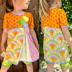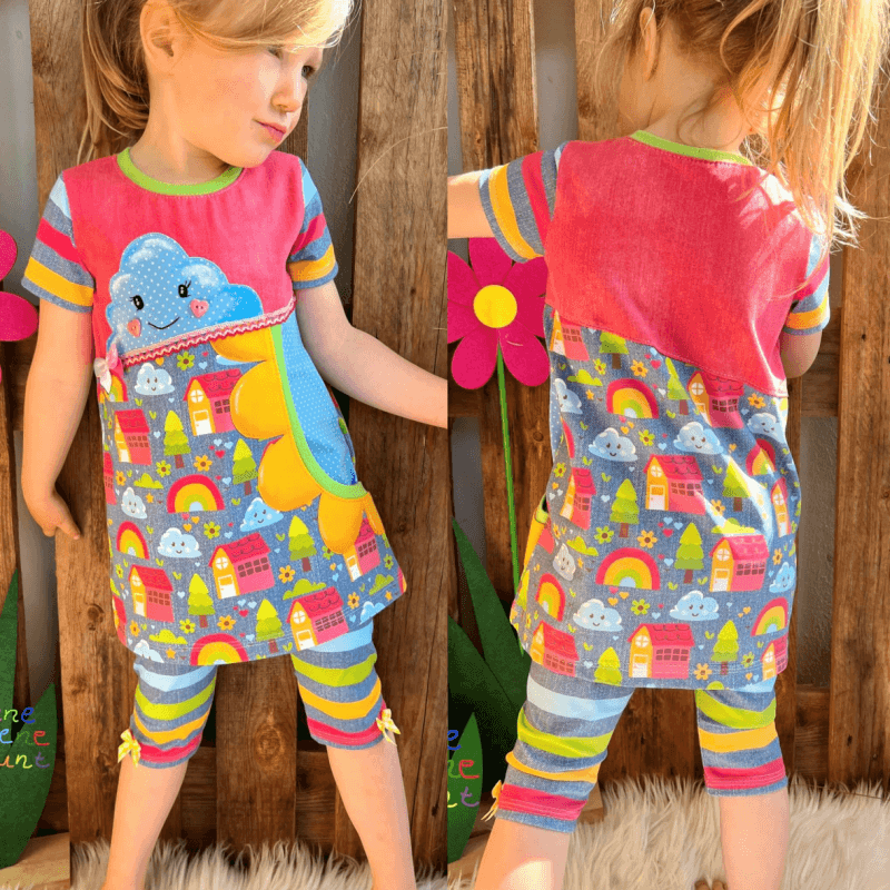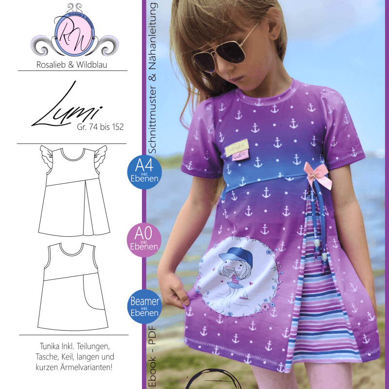 Durch ihre vielen Ärmelvarianten ist sie ein Schnitt für alle Jahreszeiten und kann dich durch die große Auswahl an Größen viele Jahre begleiten. So sind für sommerliche Temperaturen die kurzem Ärmel, der etwas längere Puffärmel, der doppelte Flügelärmel oder die einfache ärmellose Variante mit Bündchen besonders empfehlenswert, während für kältere Tage die langen Ärmel mit oder ohne Teilung und die langen Puffärmel zum Zug kommen. Auch der kurze Ärmel mit angenähtem Volant ist sowohl im Sommer ganz alleine, oder im Winter mit angenähtem langen Ärmel einfach nur zuckersüß! Lumi bietet dir also eine wirklich große Auswahl, aber das war noch lange nicht alles! Bestimmt hast du auf den ersten Blick gesehen, dass Lumi in allen Varianten durch eine schicke Asymmetrie besticht. Diese Asymmetrie wird genutzt, um schicke Details und weitere Varianten wie etwa den Keil, welcher Lumi noch mehr Volumen und die Option, Stoffe noch besser zu kombinieren, verleiht. Die große Tasche, die das Schnittmuster ebenfalls enthält, lässt kleine Sammlerinnenherzen höher schlagen! Im Ebook enthalten sind Anleitungen zu allen Varianten, Stoffverbrauchs- und Größentabellen sowie einige schöne Designbeispiele. Ebenfalls enthalten ist die Anleitung in DinA4 zum Ausdrucken. In der Zip Datei befinden sich das Schnittmuster in A4, Großdruck und als Beamerdatei - alle inkl. Ebenen, die Anleitung und das neue Lookbook aus dem Designnähen 2023.