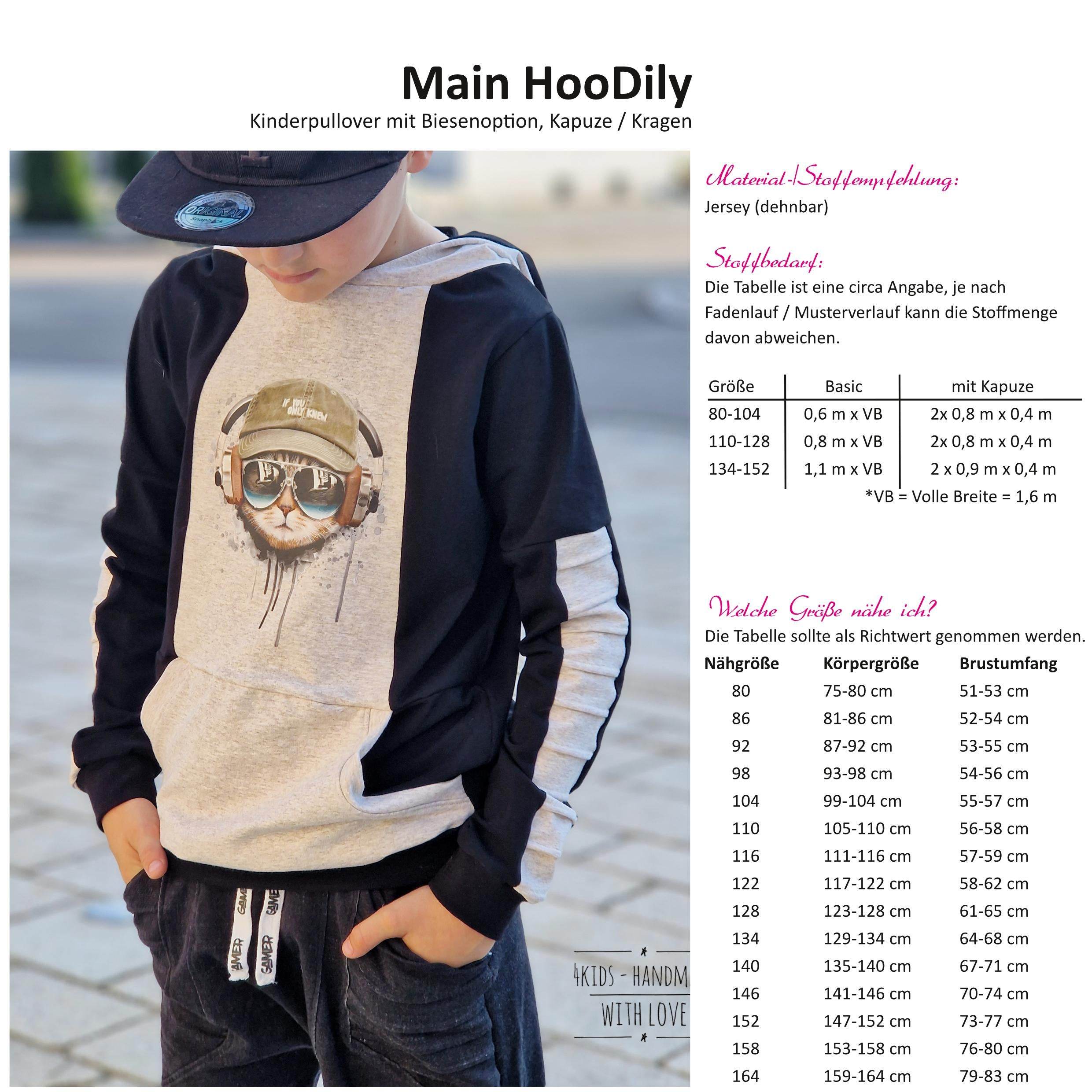 Der Main HooDily ist ein bequemer Kinderpullover in zwei Längen, einer praktischen Bauchtasche sowie weiteren Designoptionen.
