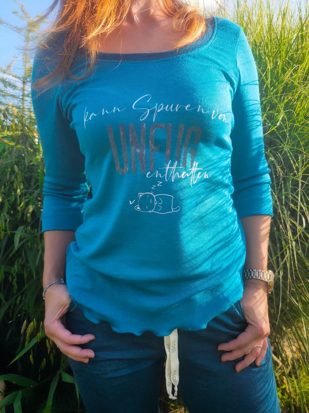 Das Schnittmuster „Chill&Sleep Loungewear Shirt“ ist ein locker sitzendes Shirt, ausgelegt auf dehnbare Stoffe, wie z.B. Wolle-Seide, Bambus-, Viskose-Jersey oder ähnliches.