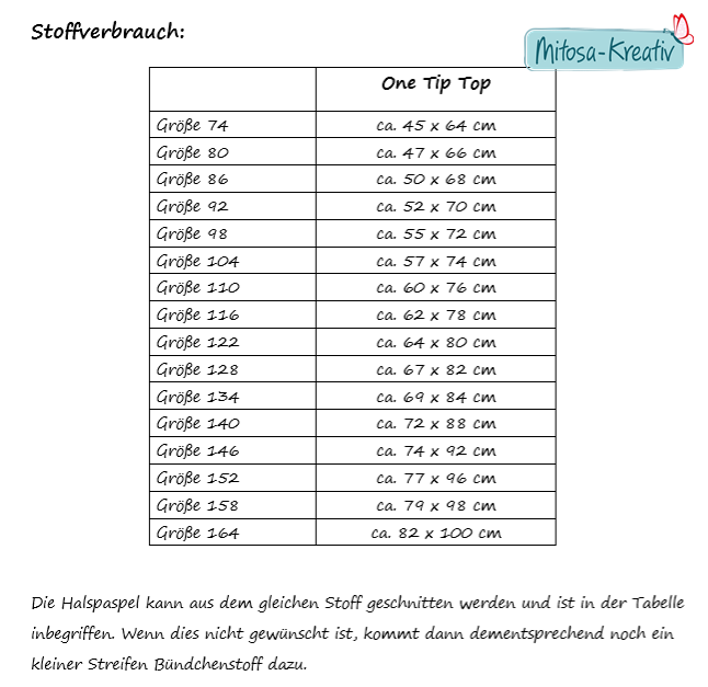 Schnittmuster von „MiToSa-Kreativ“, Inh. Sandra Mischel – Modell „One Tip Top“