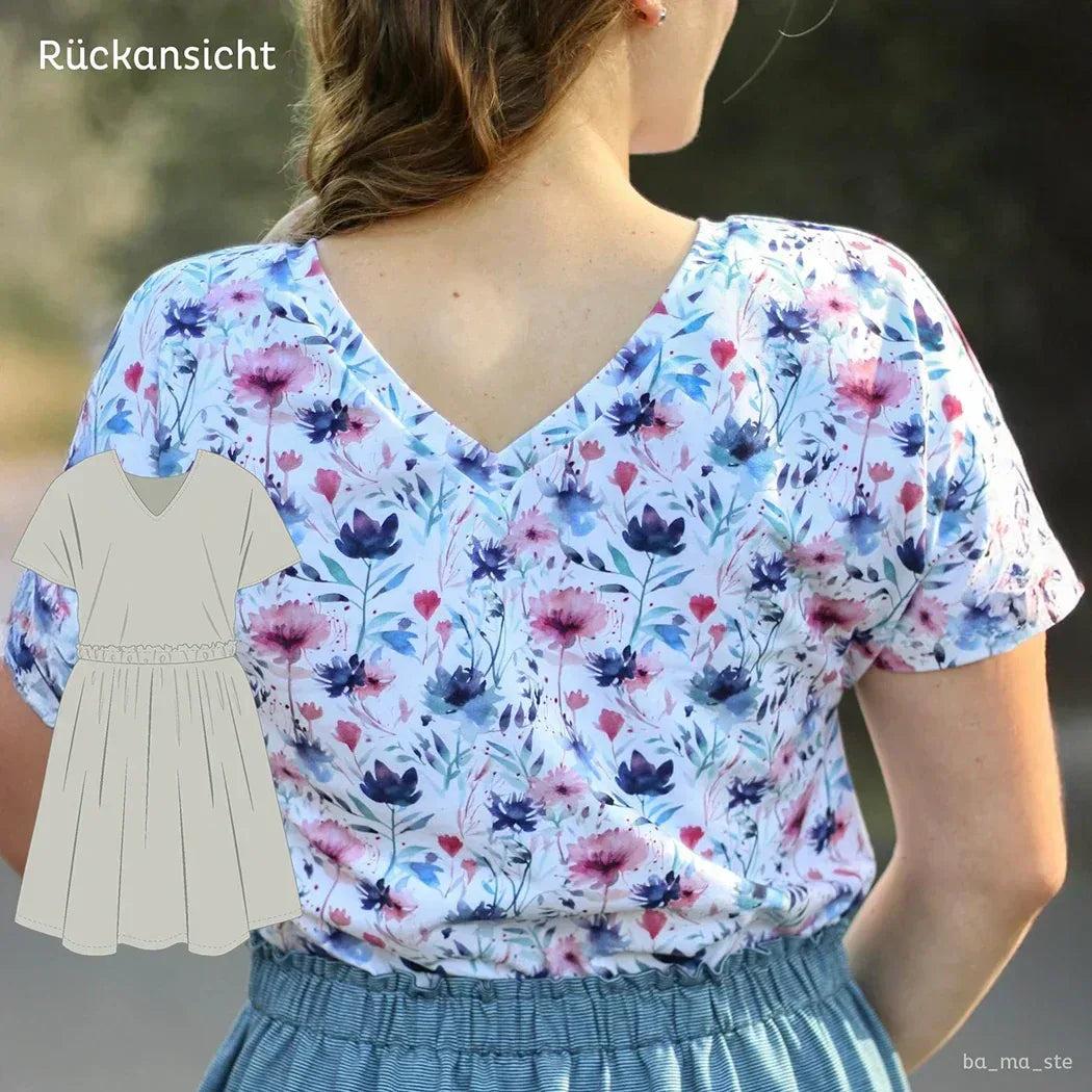 - Drei Varianten enthalten: Kleid, tailliertes Shirt, lockeres Shirt