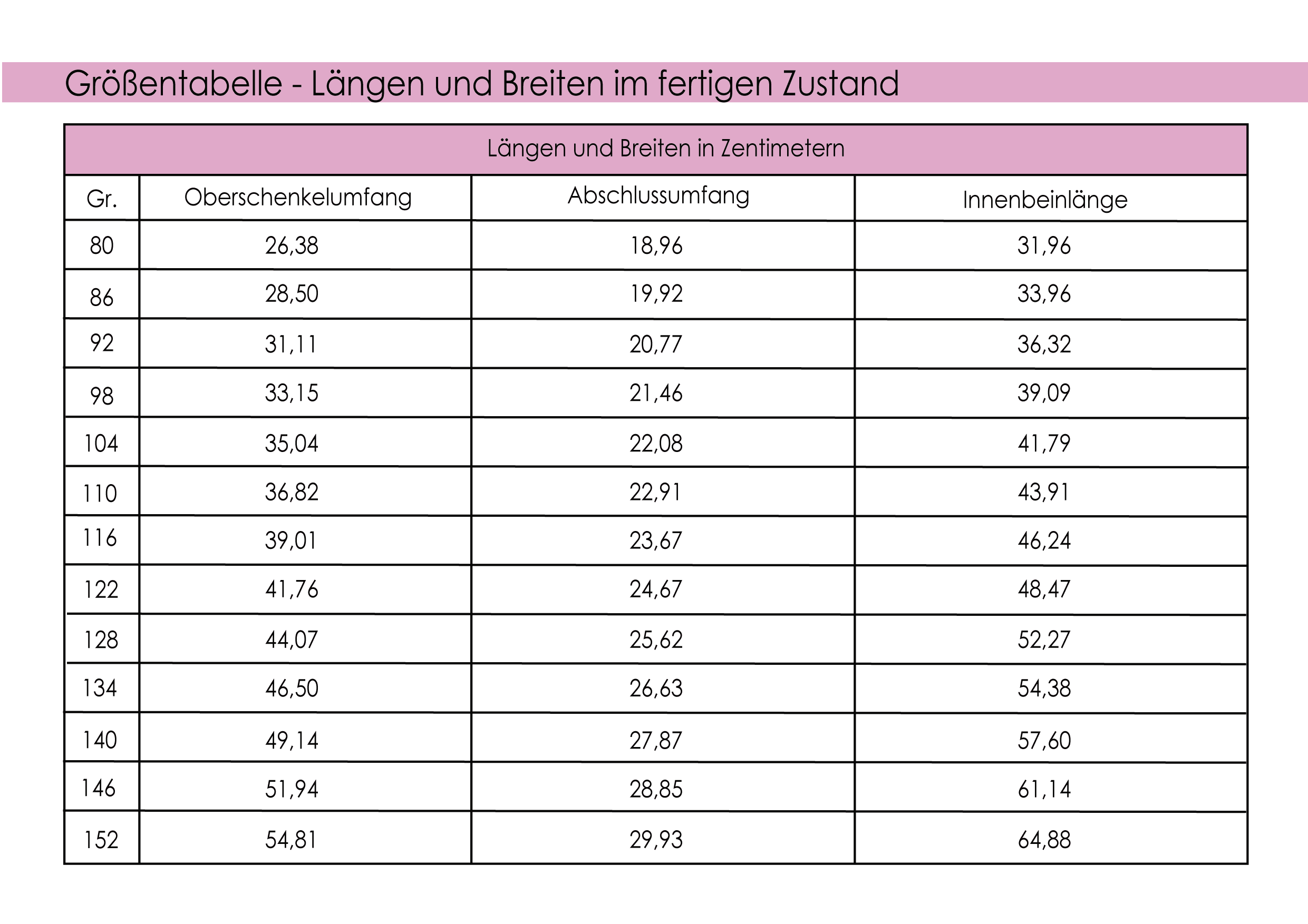 Den Schnitt habe ich in Gr. 80 bis 152 in meinem Echtgrößensystem für dich gradiert. Dabei passt z.B. Größe 80 ab einer Körpergröße von 80cm bis 85cm usw. Das Schnittmuster enthält weder Naht- noch Saumzugabe. Das Schnittmuster ist auf dickere, dehnbare Stoffe wie French Terry ausgelegt.