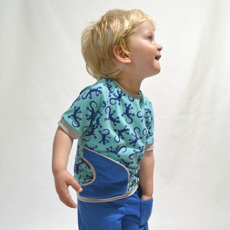 Pilvi ist ein Raglanshirt, welches mit einer Knopfleiste oder einer Tasche ausgestattet werden kann. Die praktische Tasche kann aufgesetzt oder innenliegend genäht werden. Die Saumabschlüsse können mit Bündchen oder als Umschlag gefertigt werden. Der Halsausschnitt kann als doppelt gefaltetes Bündchen angenäht oder mit Hilfe eines Streifens eingefasst werden. Perfektionismus: Es ist so gradiert, dass bei Streifenstoffen diese an den Raglannähten direkt aufeinander treffen!