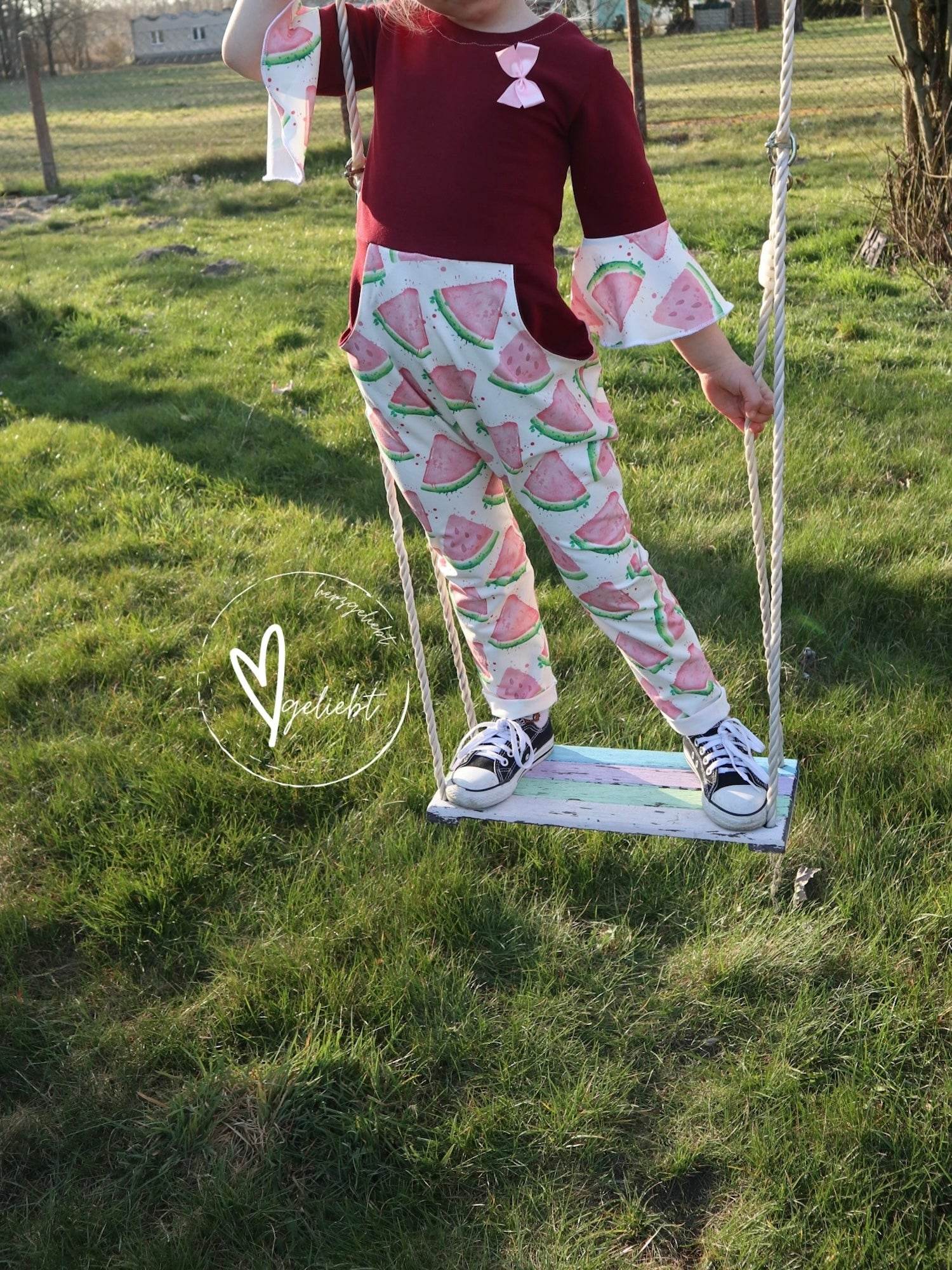 - Geeignete Stoffe: Jersey + Bündchenware bzw. Gummiband