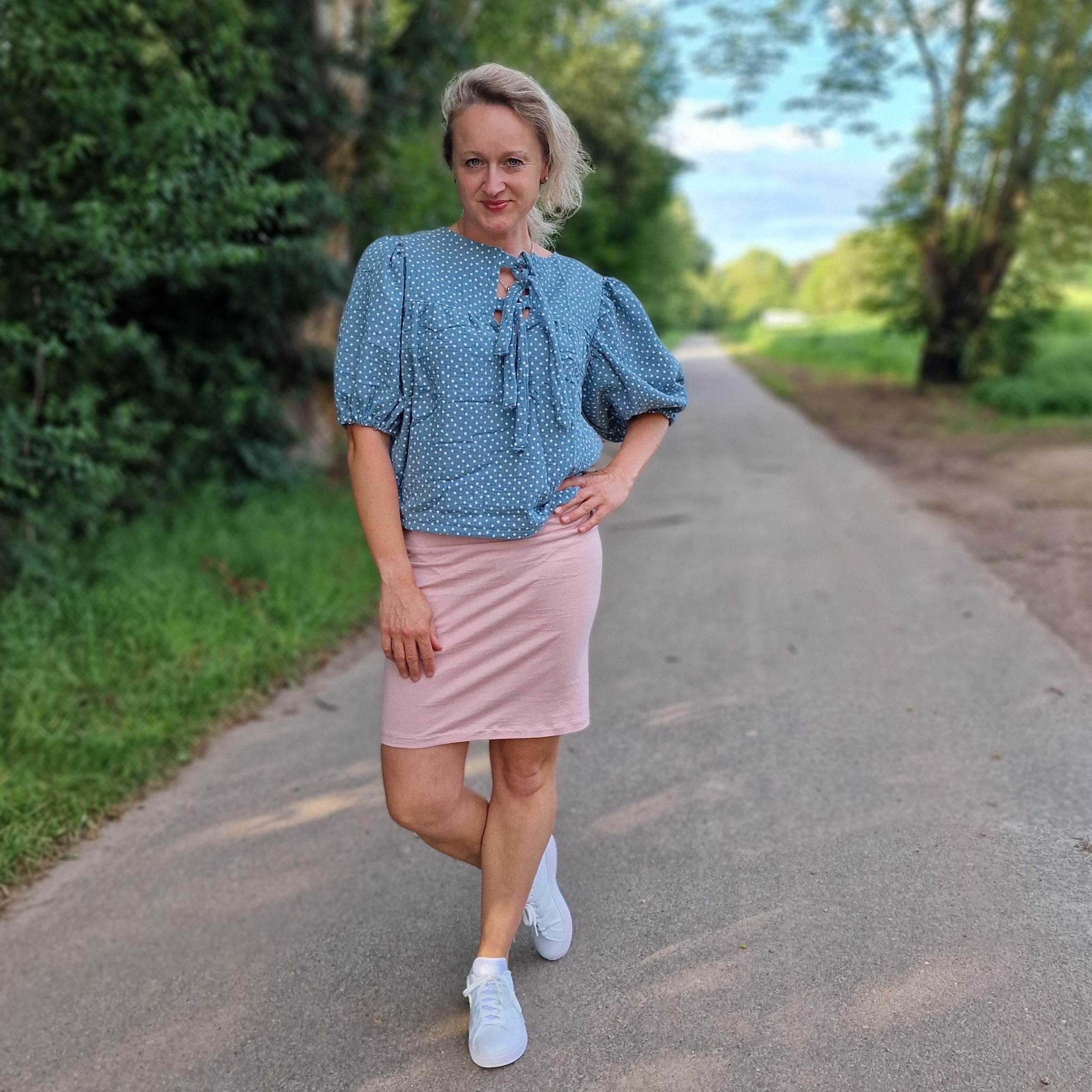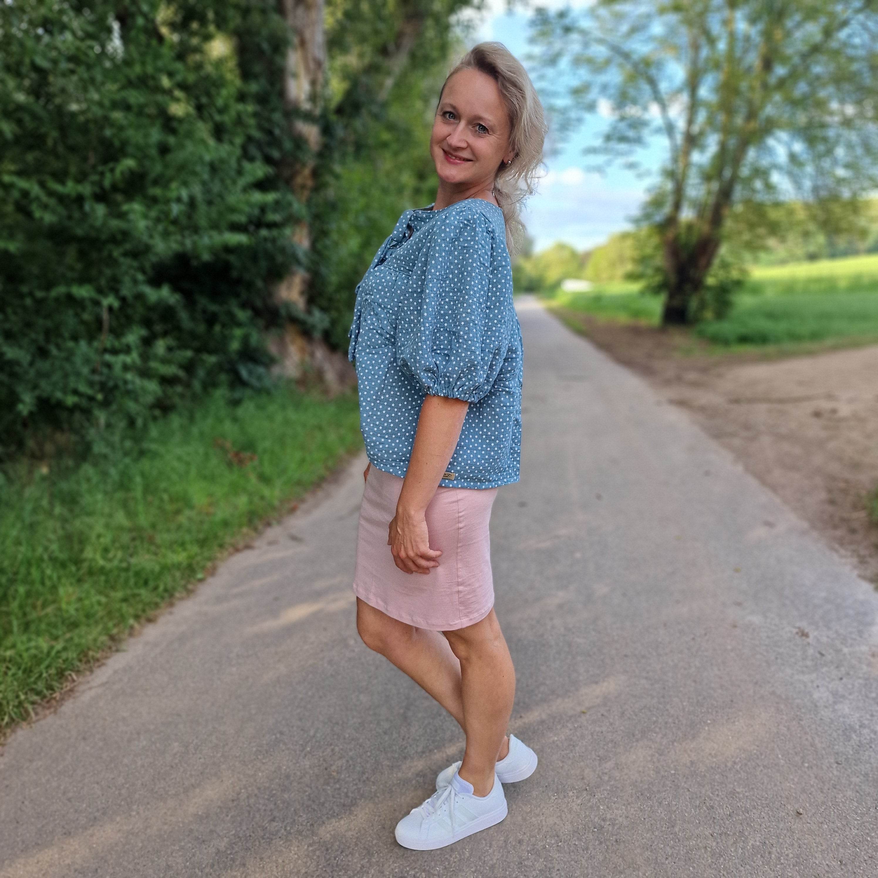 Das Schnittmuster Bluse POPPY ist für Webware gedacht. Am Besten eigenen sich leicht fallende Blusenstoffe wie z. B. Viskose, Leinen oder leichte Baumwolle