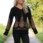 Ein legerer Basic Pullover mit ganz besonderem V-Ausschnitt, der ihn zum echten Hingucker macht. Der V-Ausschnitt wird als breites Bündchen aus Hauptstoff, Bündchenware oder für den zusätzlichen Wow-Effekt aus Bandspitze genäht. Durch die überschnittenen Ärmel erhält der Pulli einen dezenten Fledermaus Look. Du brauchst maximal 1,5 m Stoff bei einer Breite von 1,4 m. Der Schnitt ist in den Größen 32-56 gradiert.