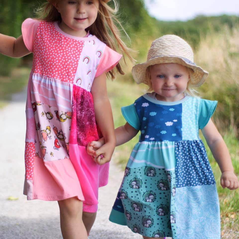 Die Weite gibt zudem eine super Möglichkeit Mix & Match anzuwenden und auch mit Webwaren im Rockteil zu spielen. „Flarbexplosion“ enthält ein Echtheitsgrößensystem. Wie das funktioniert, erfährst du im ebook genauer. Alternativ kannst du aber auch nach Konfektionsgröße nähen.