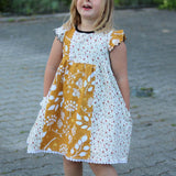 Was macht Farbexplosion besonders? Durch seine Weite klebt es im Sommer nicht an der Haut und ist schön luftig. Die vielen Teilungen sind perfekt zur Resteverwertung und geben jedem Kleid ein einzigartiges Aussehen. Enthalten sind außerdem Kappärmel oder Flügelärmel und kurze, sowie lange Ärmel. Es gibt drei Taschenoptionen, Brusttasche, geraffte Rocktaschen oder versteckte Rocktaschen.