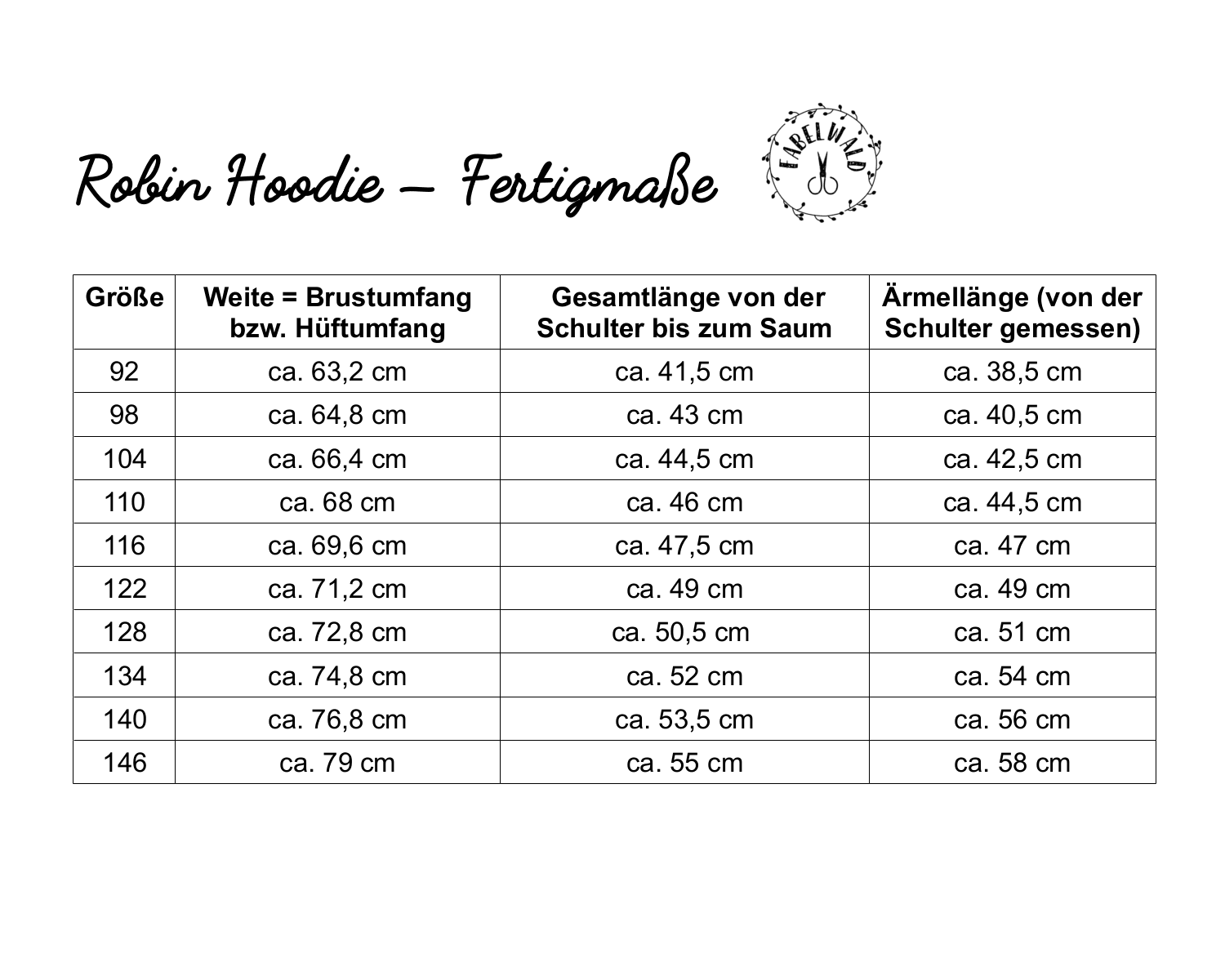 ROBIN ist ein eher schmal geschnittener Kinderpullover mit Raglanärmeln, der in vielen Variationen genäht werden kann. Mit ROBIN kannst Du sowohl perfekte Basics als auch besondere Pullis mit vielen Details nähen. Das Schnittmuster liegt in den Einzelgrößen 92-146 vor.
