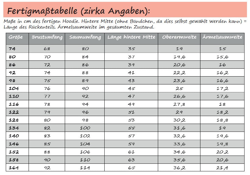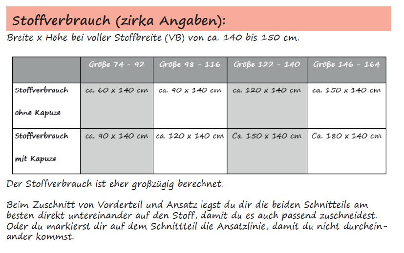 Schnittmuster "Shabby Asymmetrie Hoodie Kids" Gr. 74 - 164