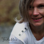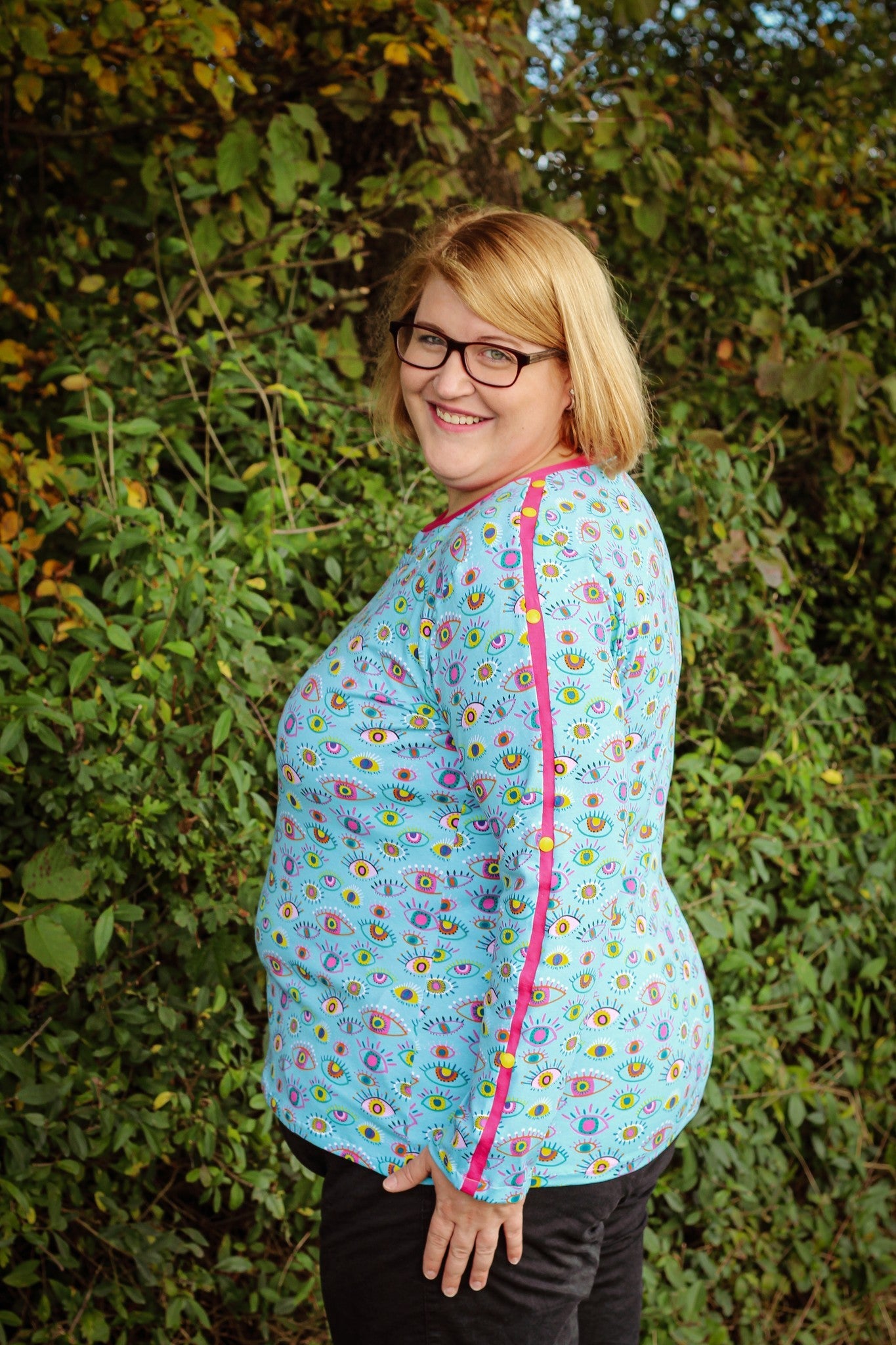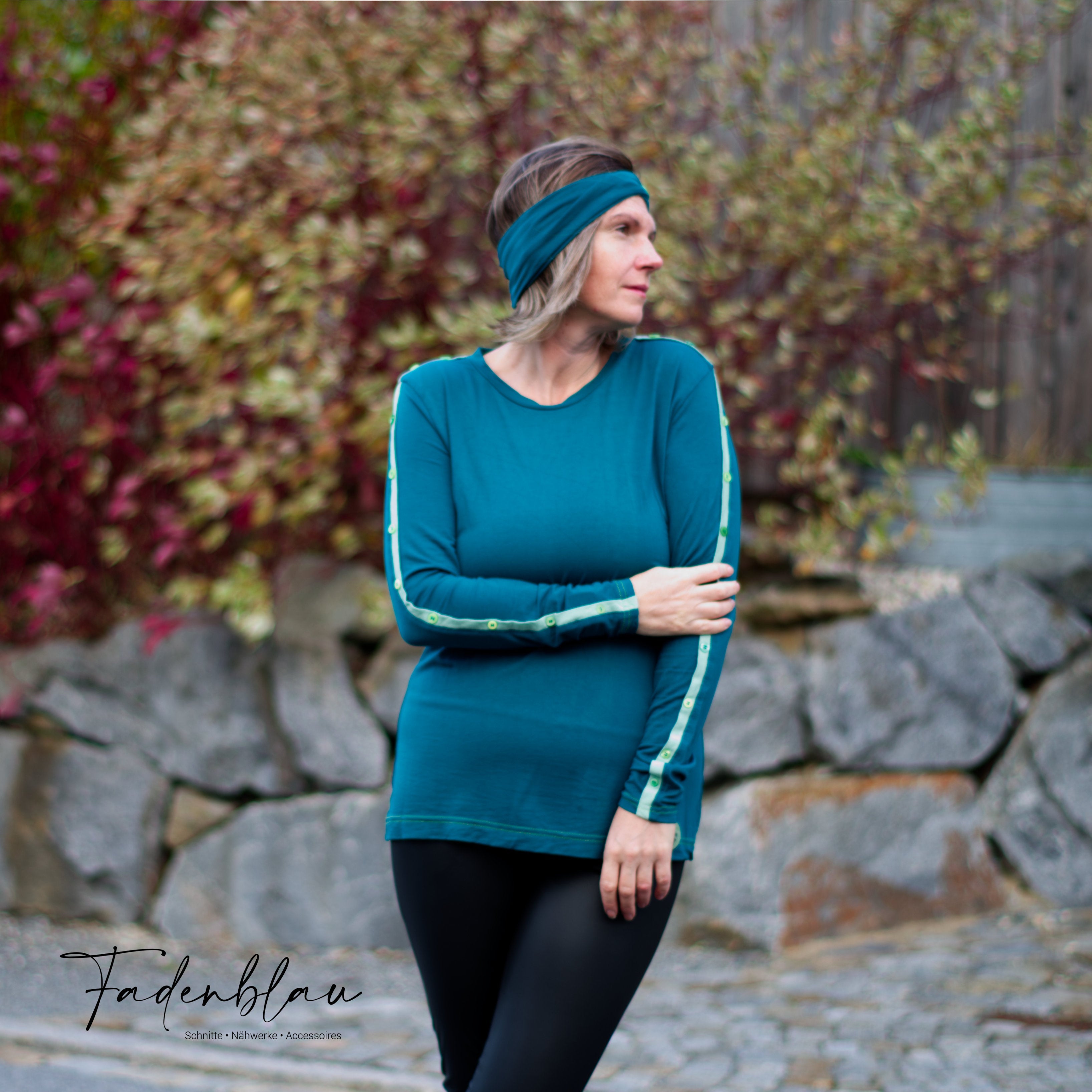 Das Schnittmuster BlueButton ist ein echtes Basic-Must-Have für jede Jahreszeit! Die klassische, aber moderne Optik wird durch eine charmante Knopfleiste betont, die von der Schulter über den Ärmel verläuft. Alternativ kannst du das Shirt mit einer eleganten Passe nähen.