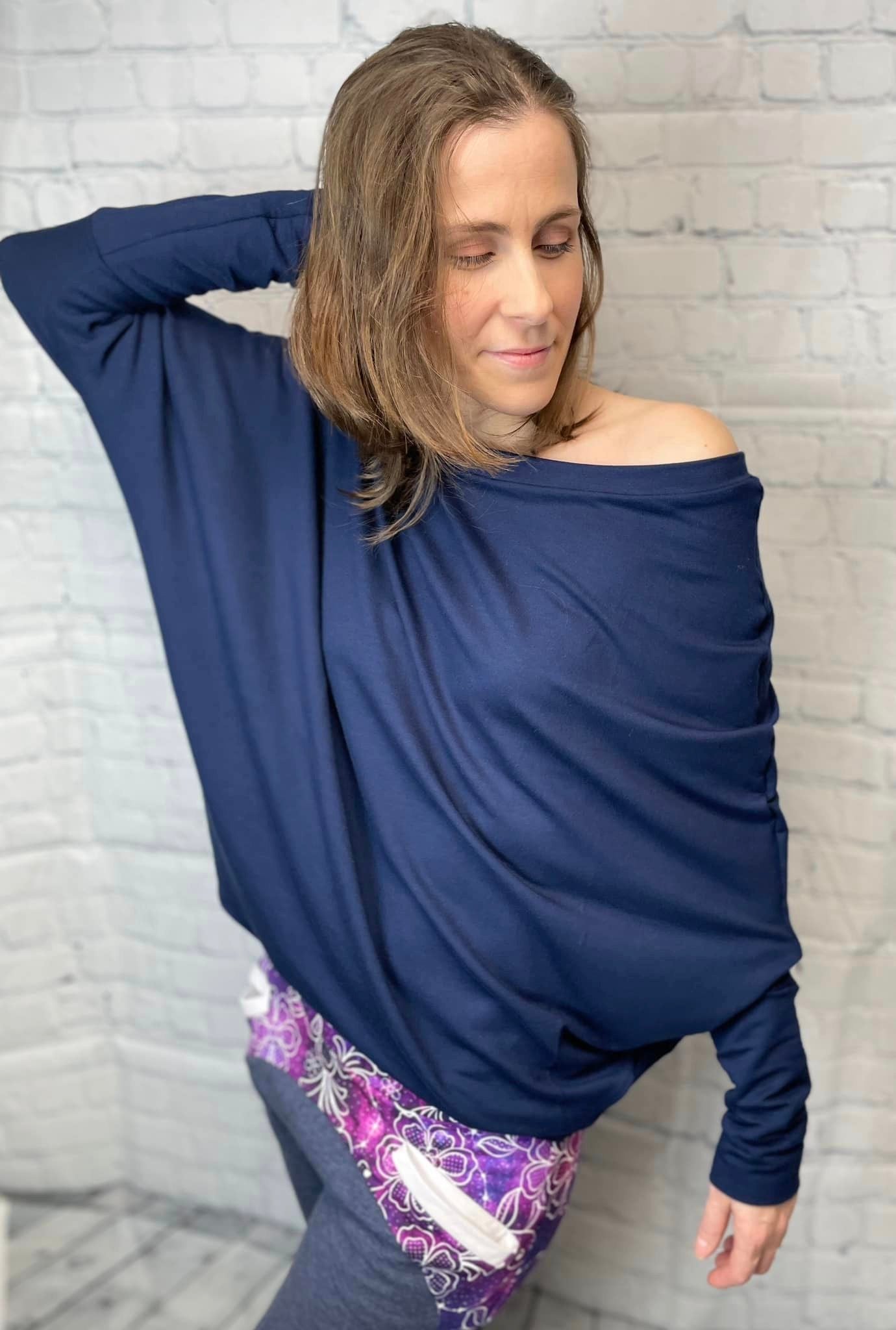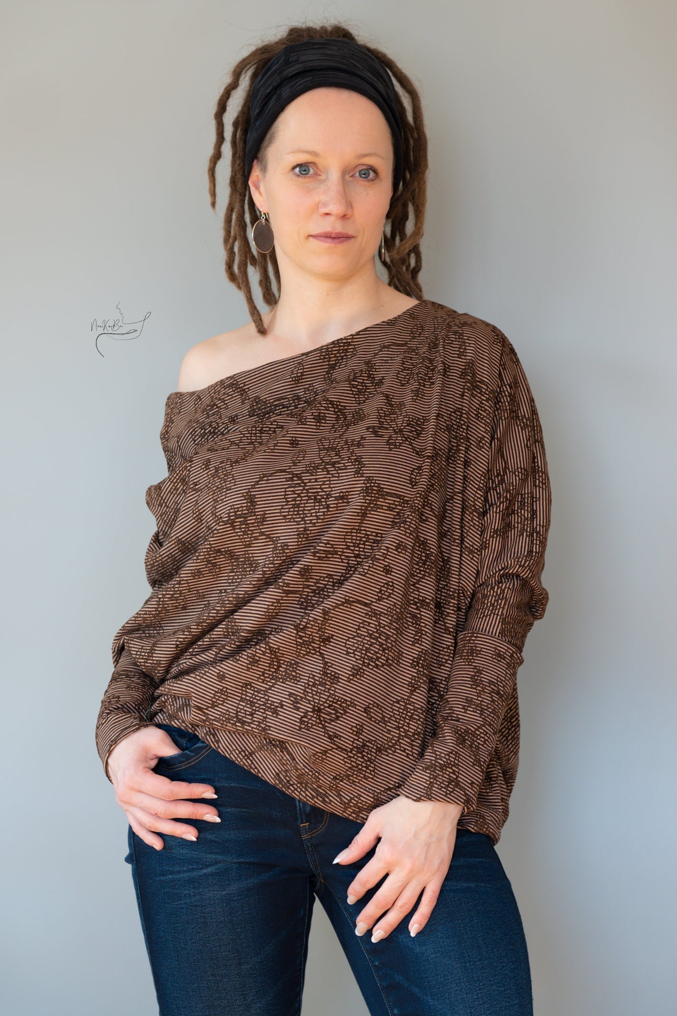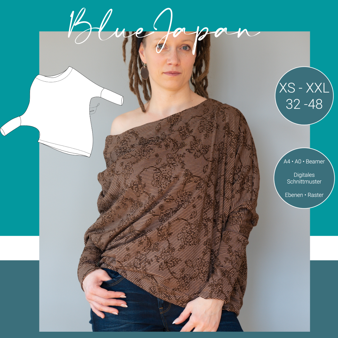 Das BlueJapan kombiniert den klassischen Kimono-Stil mit modernen Elementen. Inspiriert von der traditionellen T-Form und den weiten Ärmeln, besticht dieses Shirt durch einen asymmetrischen Ausschnitt und Saum. Es fällt locker um den Körper und kann auf einer Seite leicht schulterfrei getragen werden – ein echter Hingucker für einen lässig-eleganten Look.