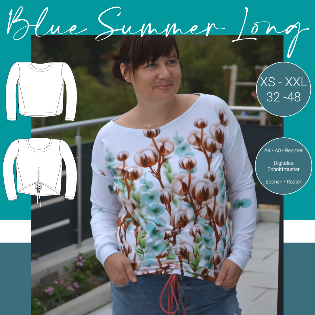 Du suchst ein bequemes Shirt mit dem gewissen Etwas? Ein Basic-Oberteil, das nicht langweilig ist? Dann ist das Schnittmuster BlueSummerLong genau das Richtige für dich!