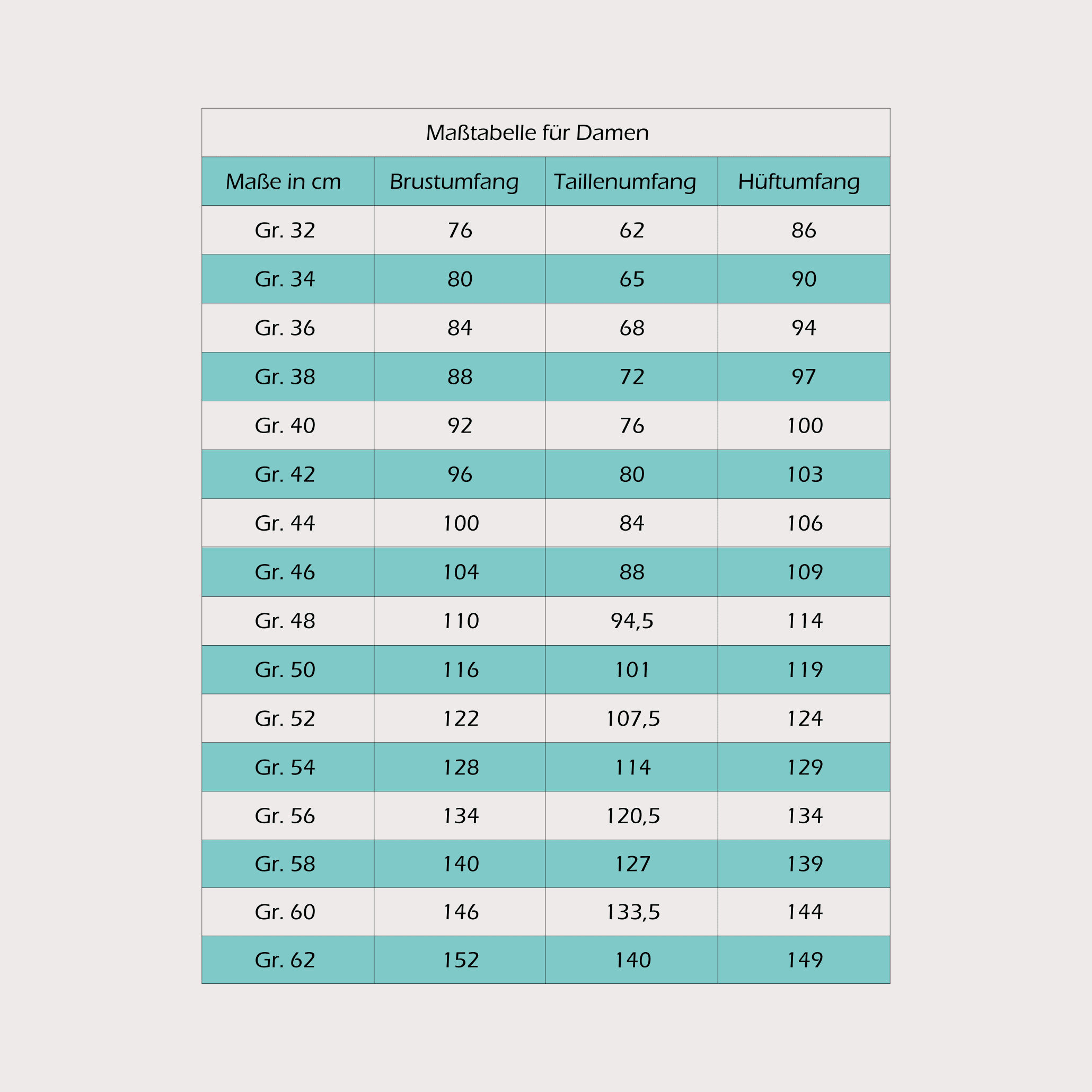 • Im Schnittmuster enthalten sind die Damengrößen 32 - 62.