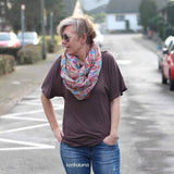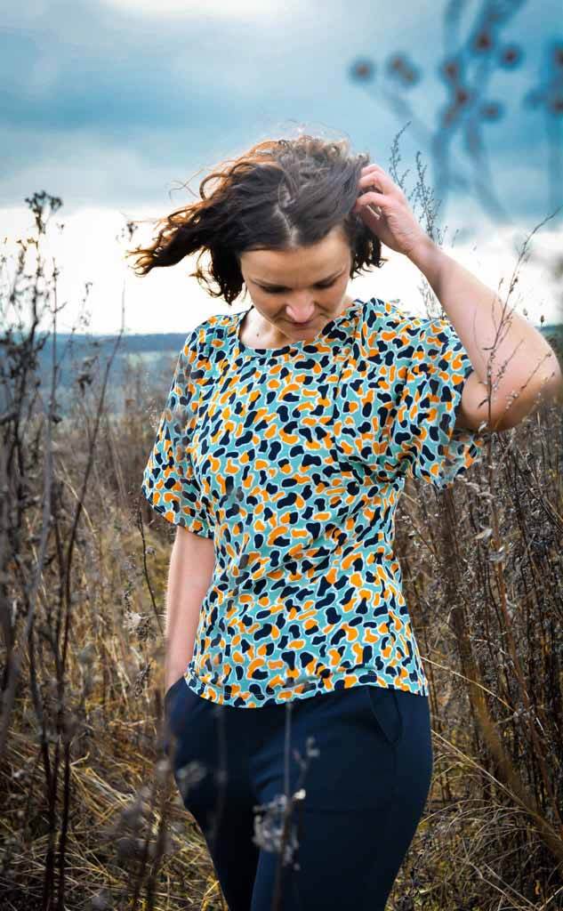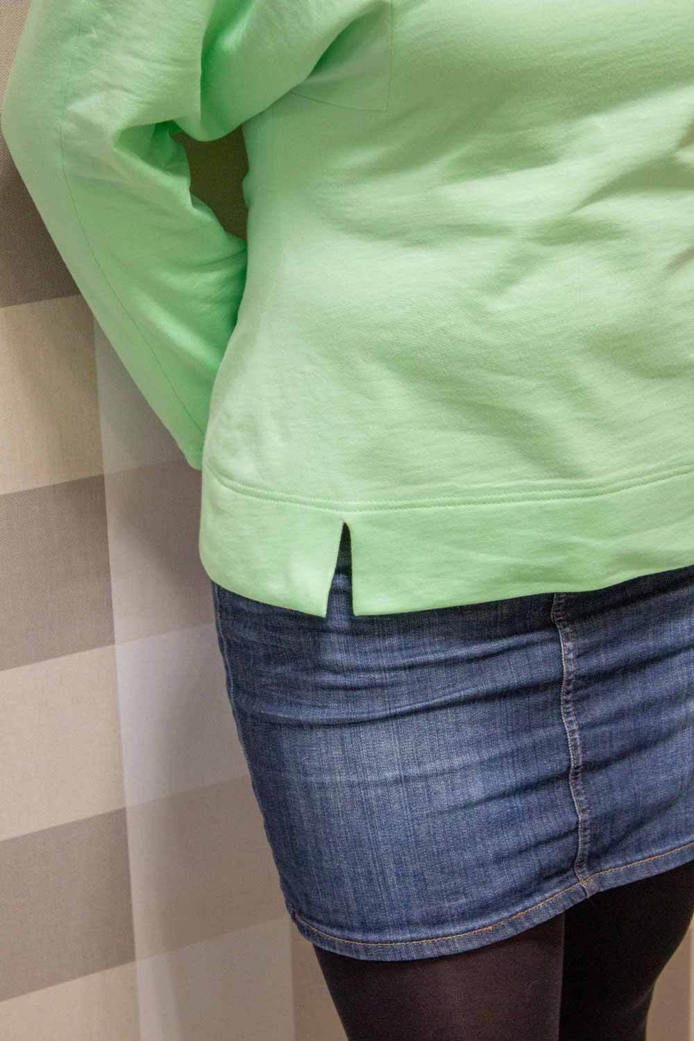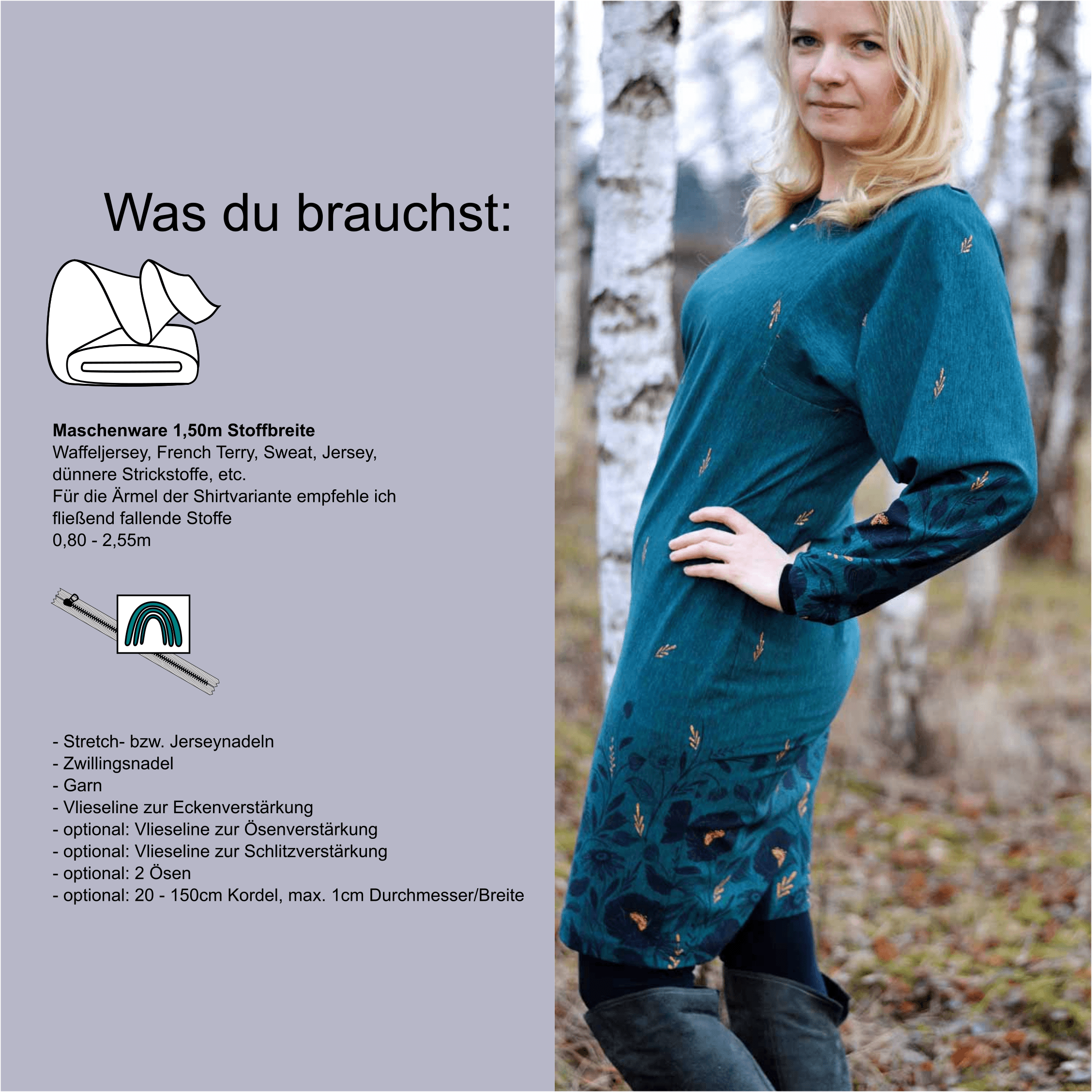 • Materialempfehlung: Waffeljersey, French Terry, Sweat, Jersey, dünnere Strickstoffe, etc..
