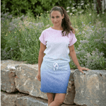 s´Fröilein ist ein locker sitzendes Fledermausshirt, welches normal gesäumt oder mit Gummiband am Saum genäht werden kann. s’Fröilein kann als Colour-Blocking Shirt mit zwei oder drei Farben, als Crop-Top mit Kordelzug oder mit Rockteil zum Strandkleid genäht werden.