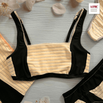 Das Bustier hat einen modernen, eckigen Ausschnitt und angeschnittene Träger. Mit der Anleitung kannst du es leicht nähen und zwischen schmalem oder breitem Unterbrustgummi und einem Verschluss wählen. So passt es genau zu dir.