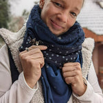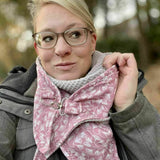 SKEW ist ein großes asymmetrisches Dreieckstuch, welches seitlich geschlossen wird. Auf Grund der unterschiedlich langen Zipfel wird das Tuch so gewickelt, dass es quasi nicht ohne Verschluss auskommt. Genäht wird es allerdings wie ein „gewöhnliches“ Tuch...nur mit dem gewissen etwas =) Du kannst das Tuch auch für Kids nähen. Dafür kannst du die Druckgröße auf 80% minimieren und einfach loslegen.