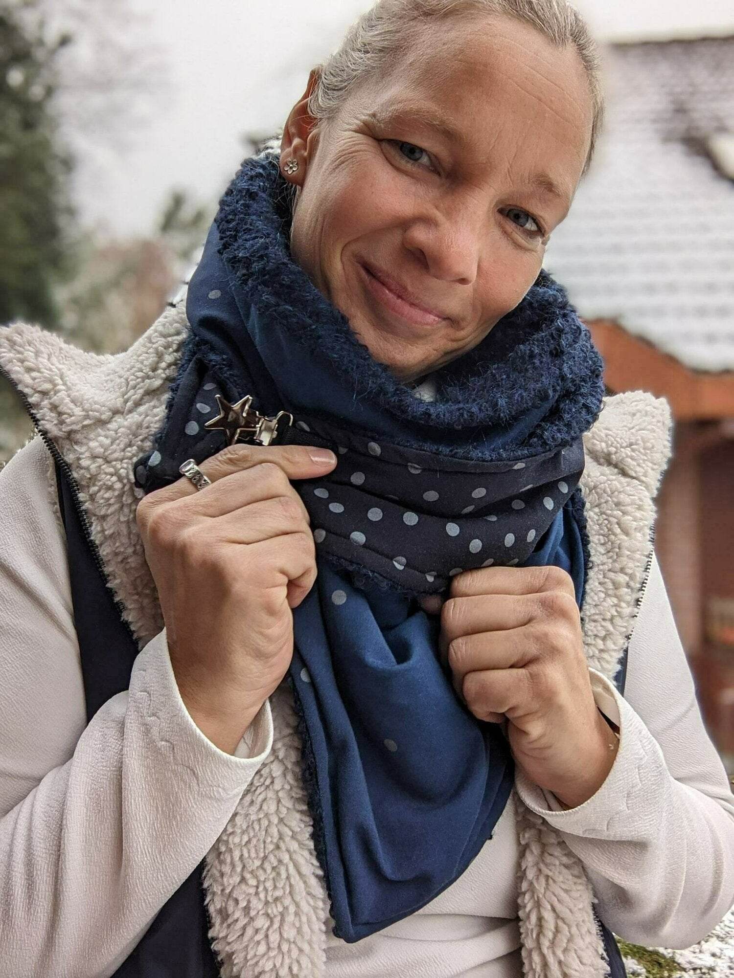 Ich liebe diesen Schnitt und habe in schon sehr oft in verschiedenen Varianten genäht. Als Tragejacke und Weste aus Sweatstoff.