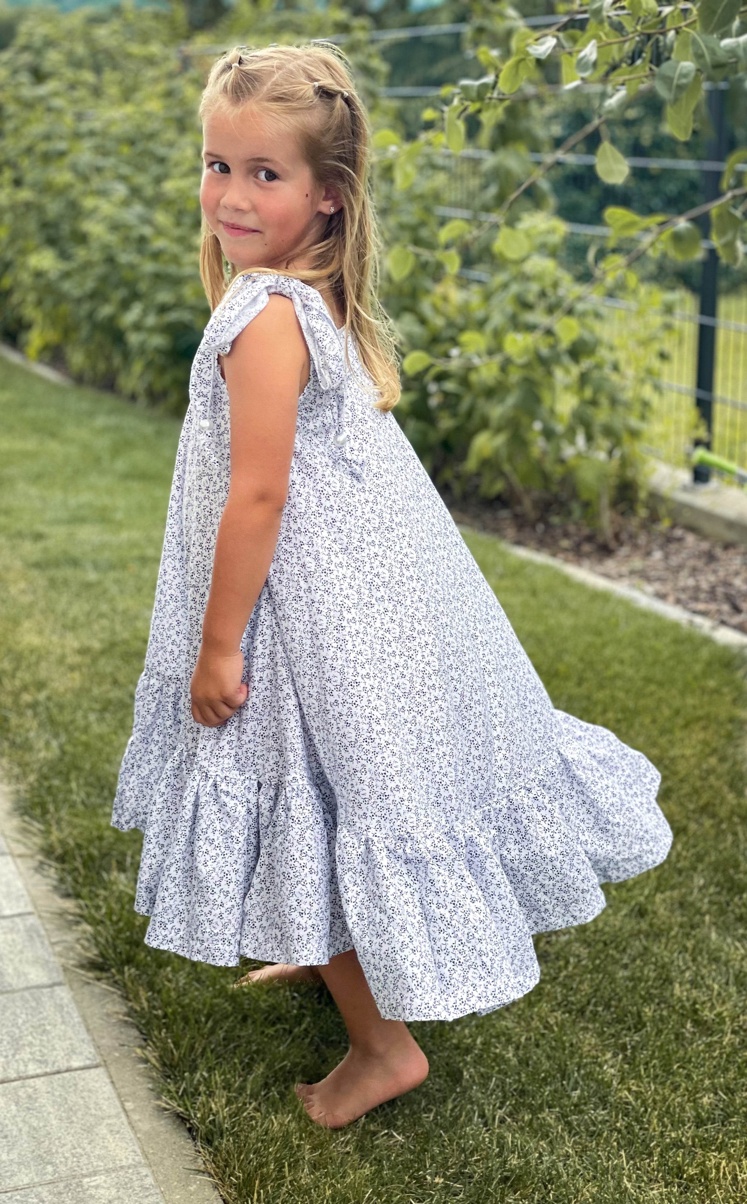 Lass deine kleine Prinzessin in diesem bezaubernden Sommerkleid "Charlotte" die warme Jahreszeit in vollen Zügen genießen! Perfekt für den Garten, den Strand oder sommerliche Festlichkeiten – dieses Kleid wird zum Lieblingsstück in jeder Saison.