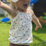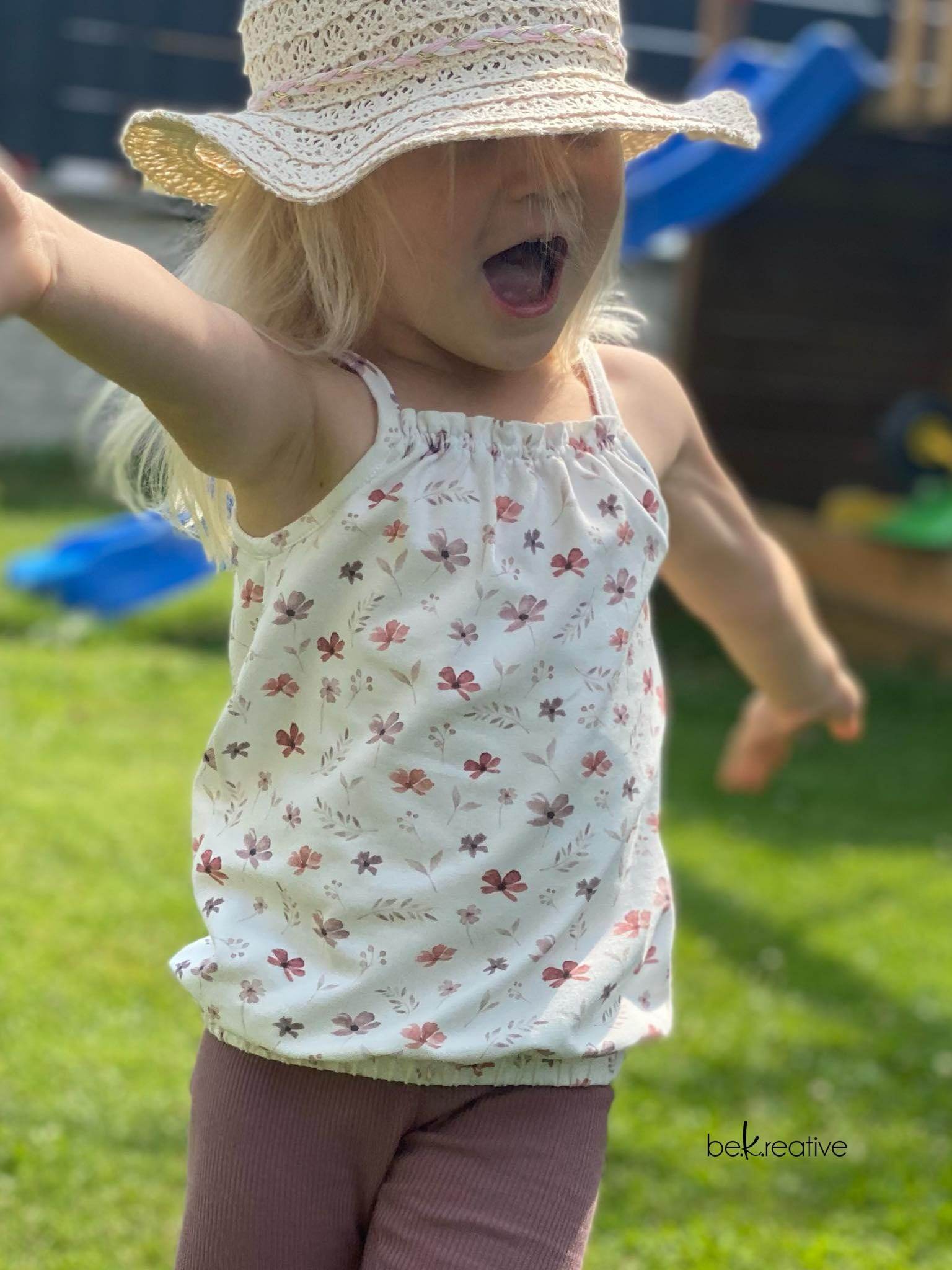 Der „Sonnenkuss“ ist ein luftiges Schnittmuster für ein Oberteil, eine Tunika oder ein Kleid mit schmalen Trägern – ideal für warme Tage. Ob ganz schlicht oder mit verspieltem Rockteil – du entscheidest, wie dein Sonnenkuss aussehen soll.