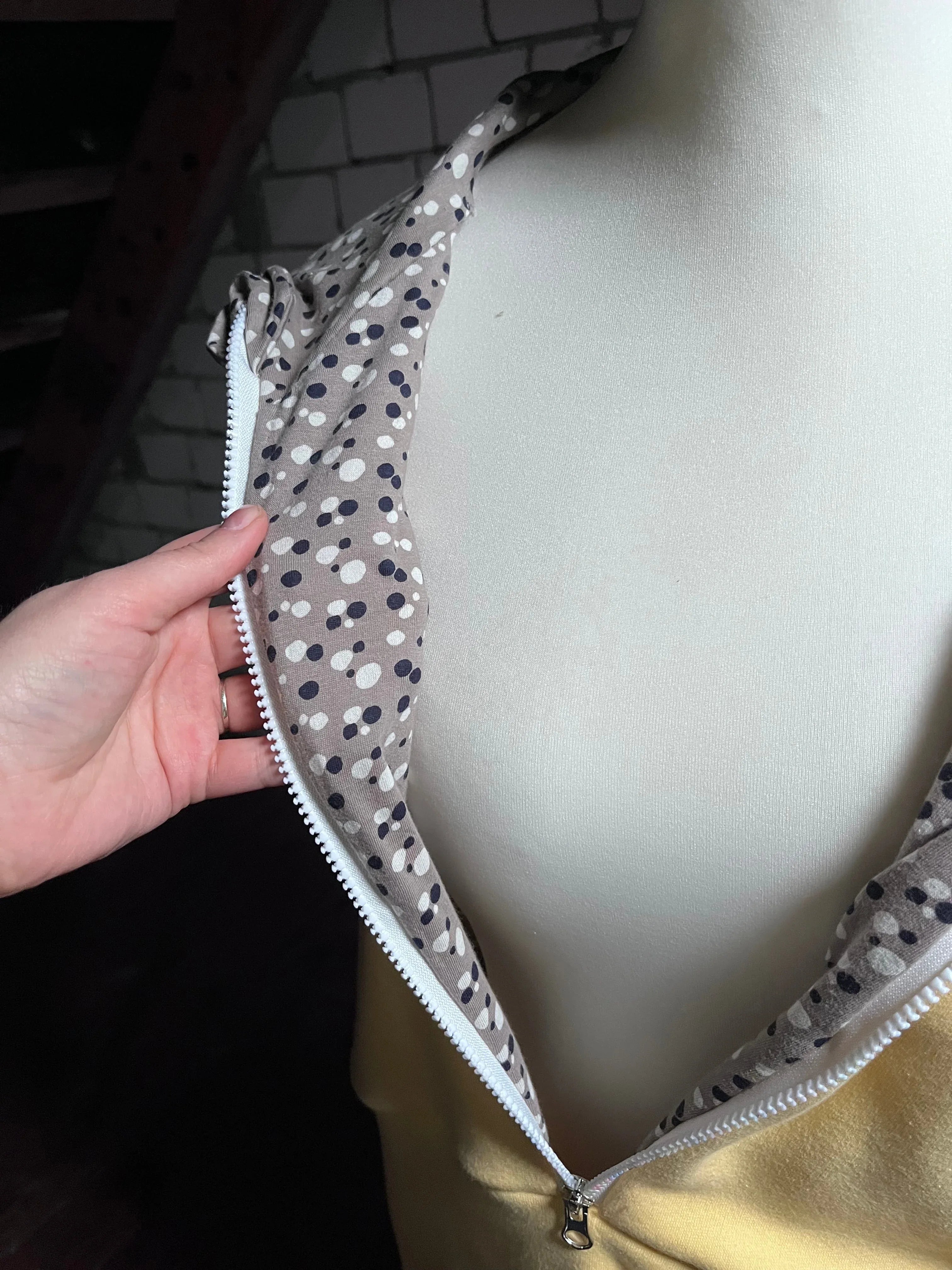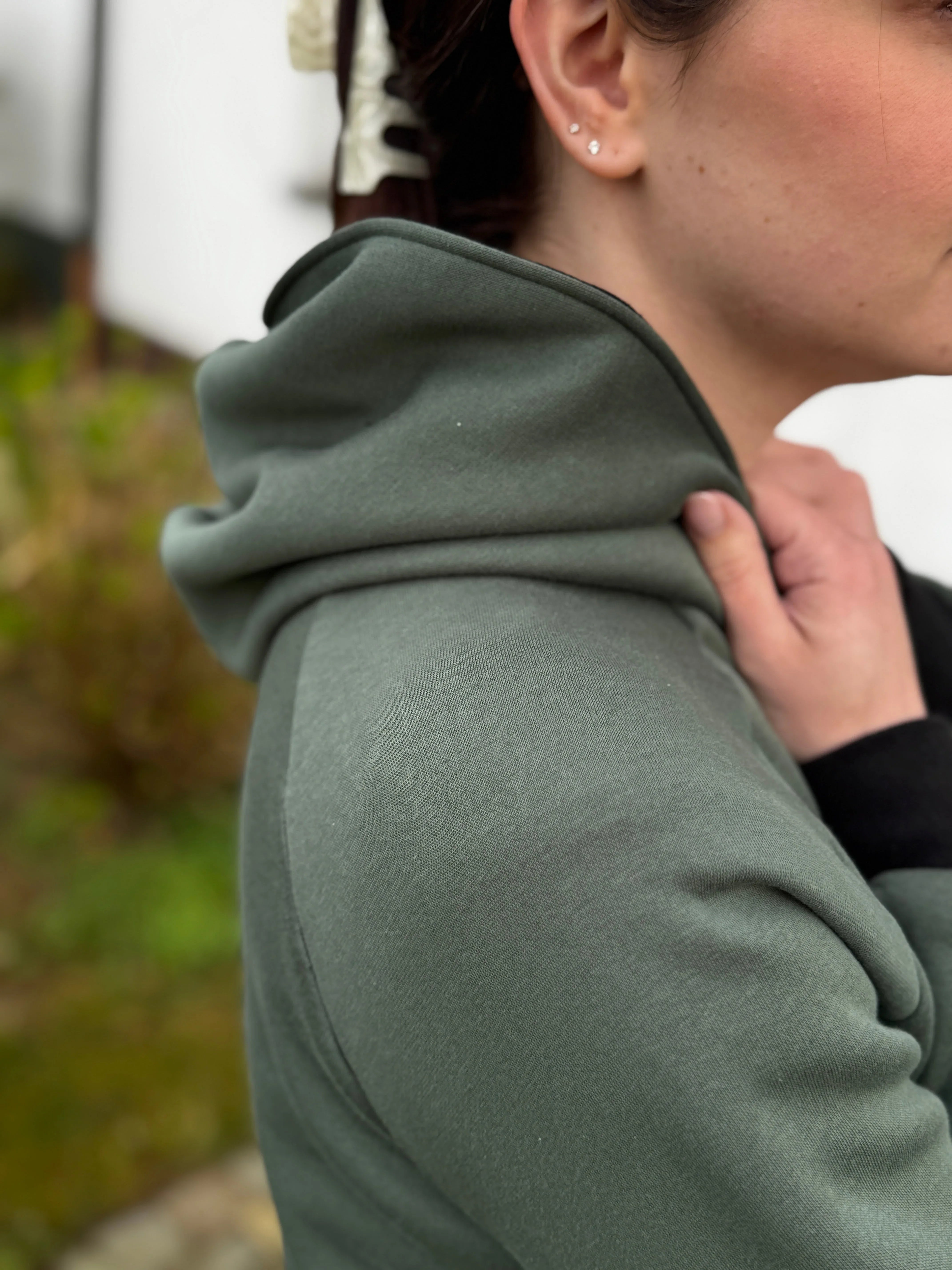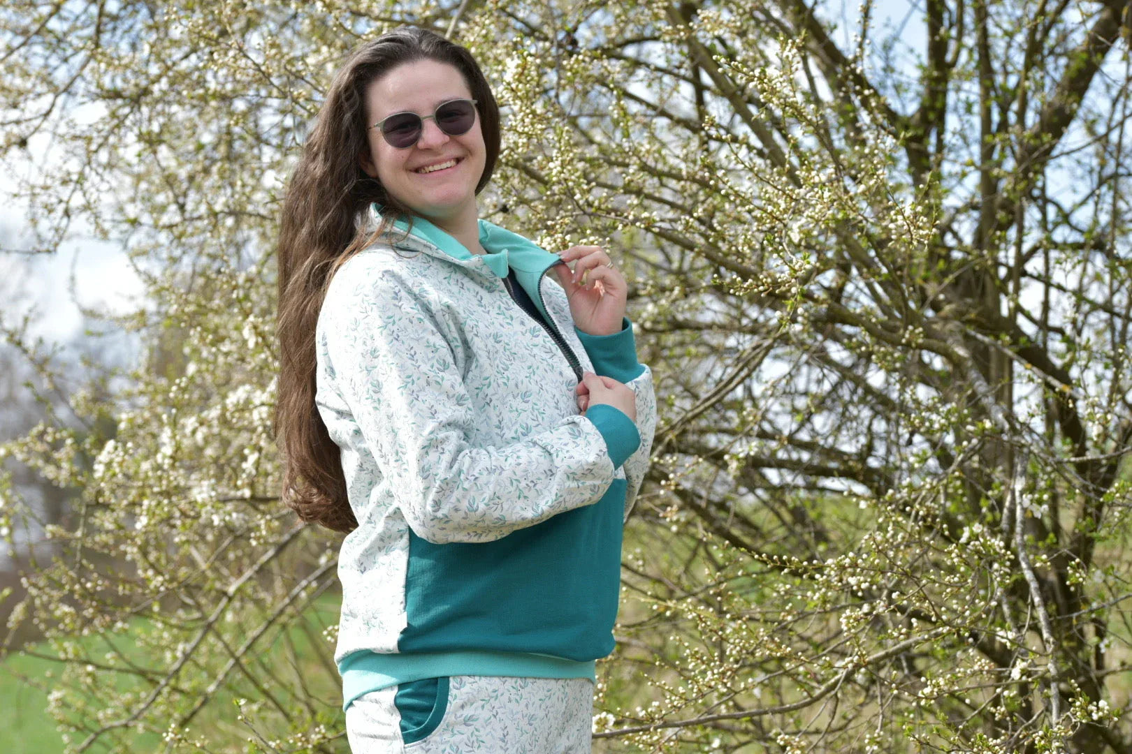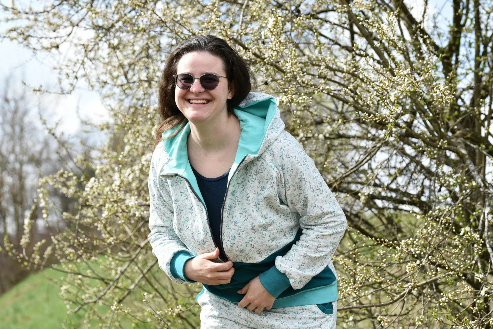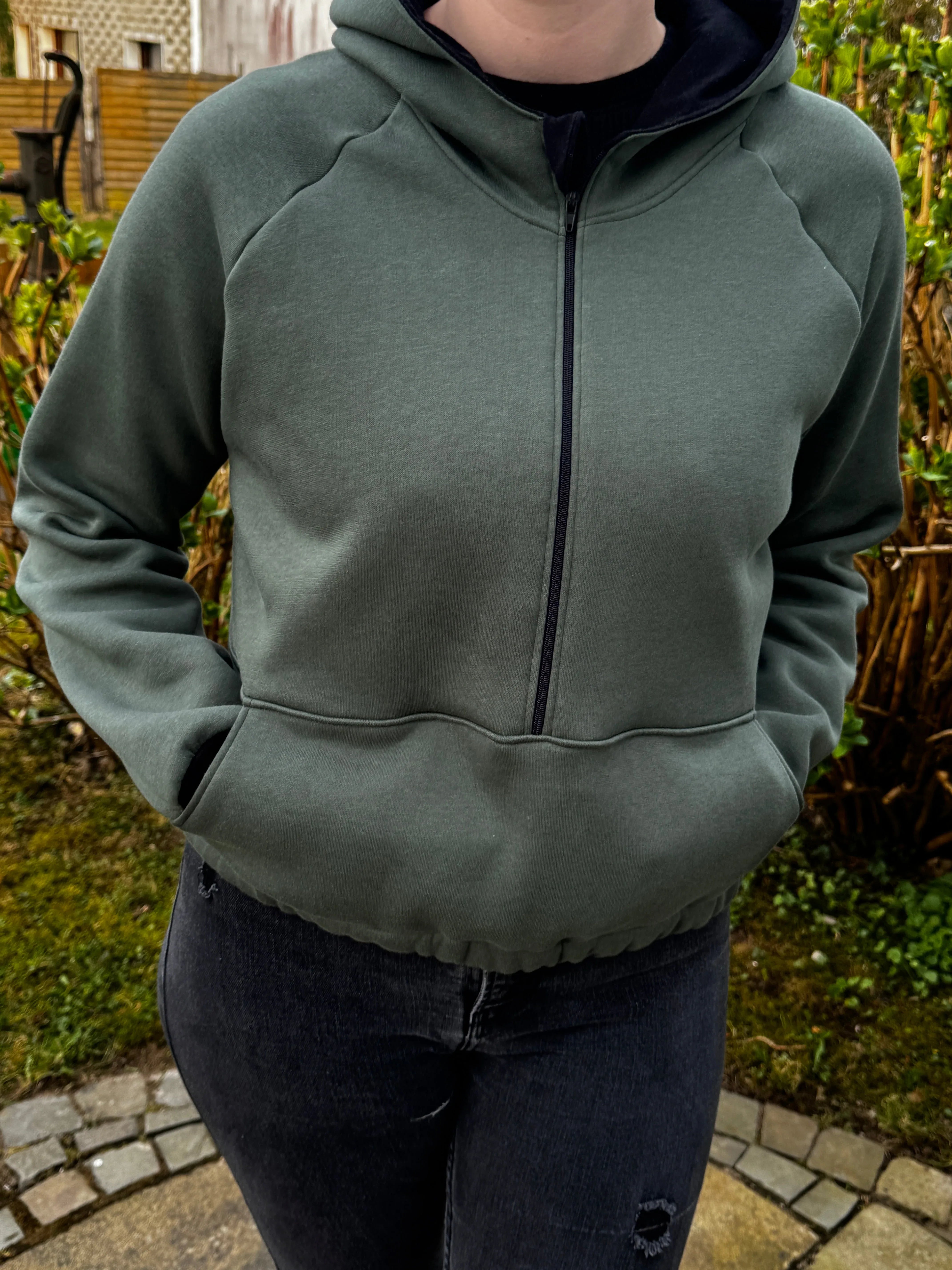 Der Hoodie ist extra so konzipiert, dass er auch für fortgeschrittene Anfänger_innen gut nähbar ist. Das Einsetzen des Reißverschlusses wird mit Bildern sehr detailliert gezeigt. Zudem wird der obere Teil des Vorderteils gerade unterhalb des Reißverschlusses angenäht, was diesen Schritt vereinfacht. Wenn du der bebilderten Anleitung genau folgst, kann nichts schiefgehen.
