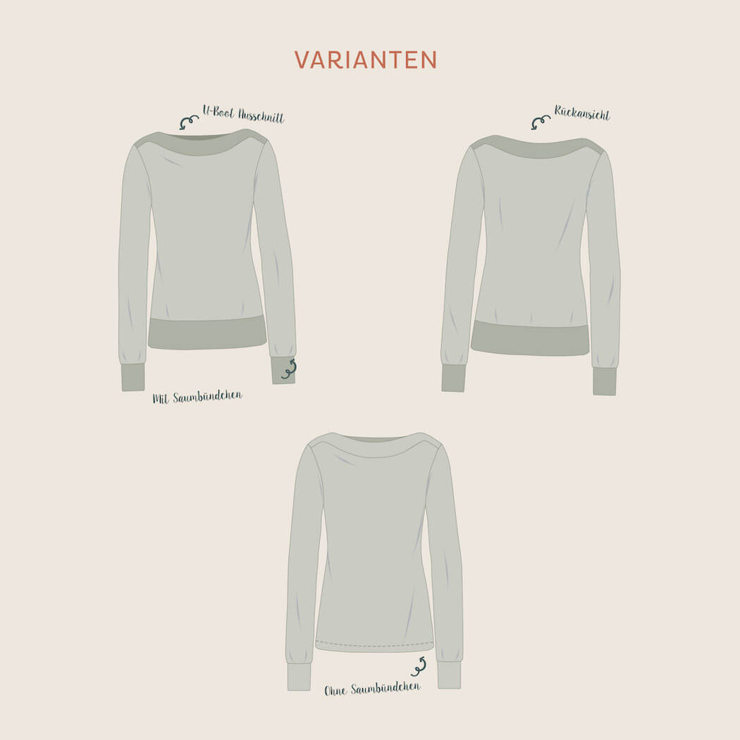 Strickpullover "Bettina"mit U-Boot Ausschnitt für Damen | Schnittmuster & Nähanleitung Gr. 32-46