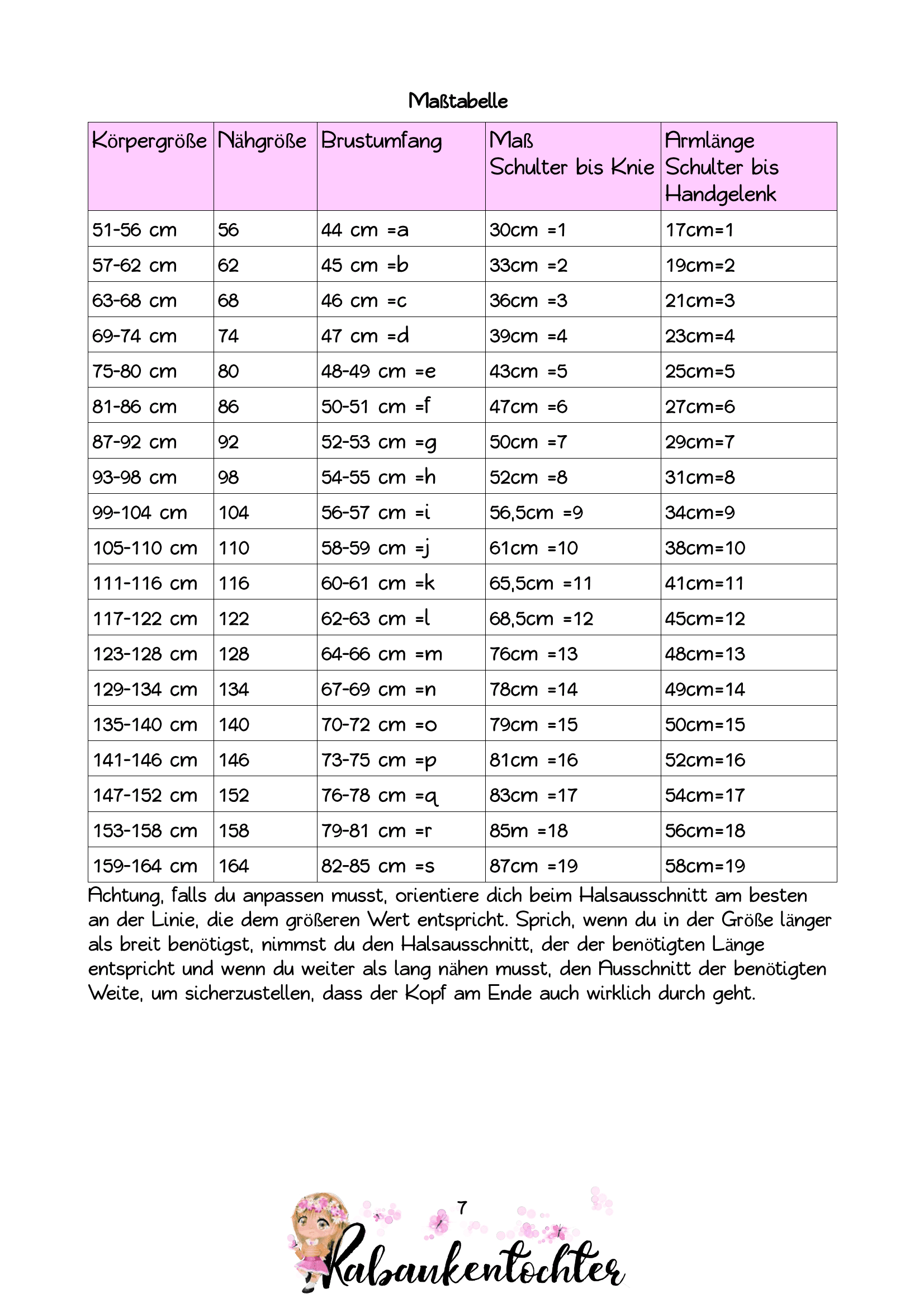 „Summerwings“ enthält zudem ein Echtheitsgrößensystem mit Maßtabelle und Anpassungsanleitung - Für eine tolle Passform <3