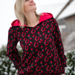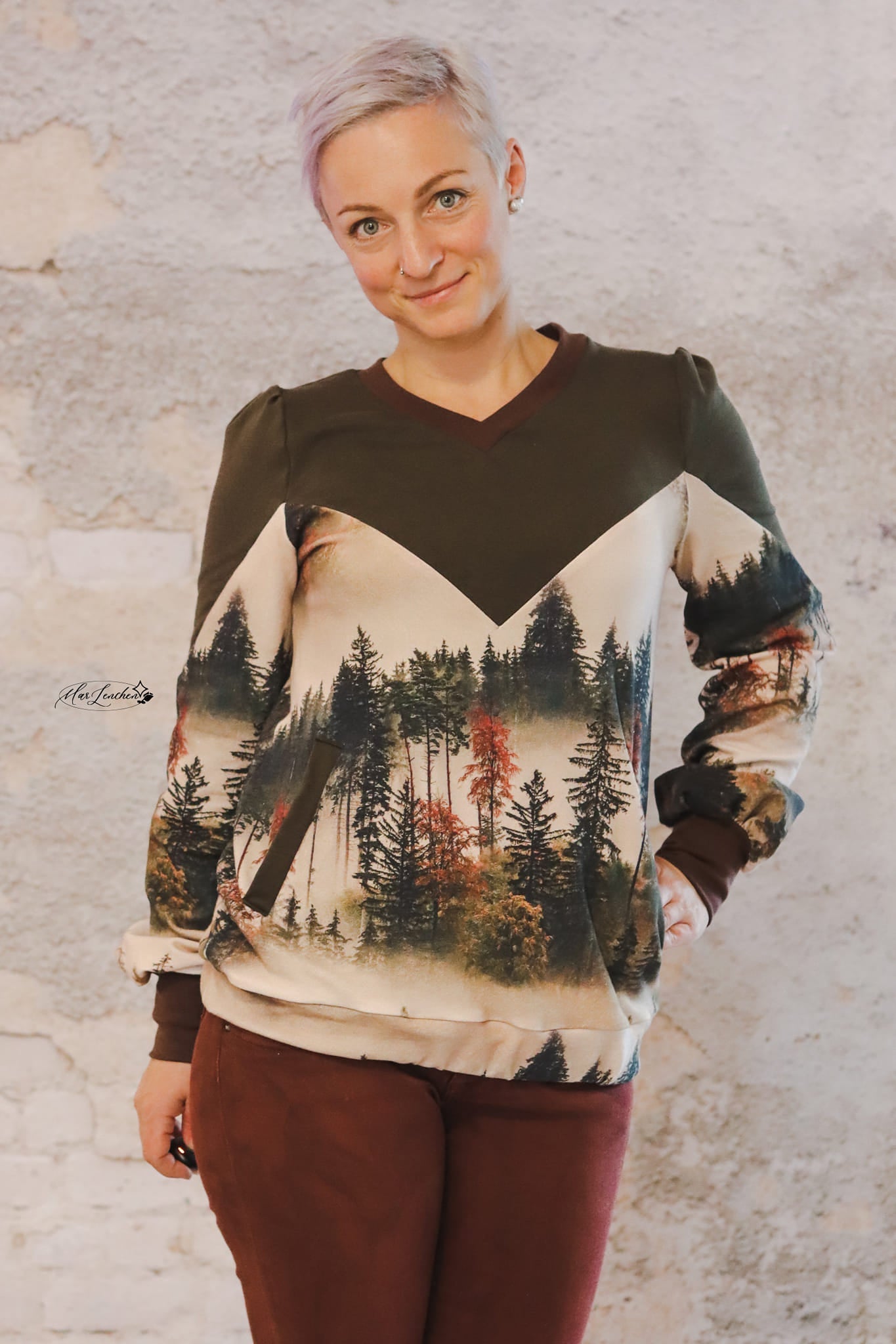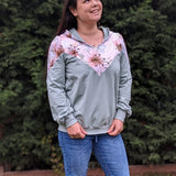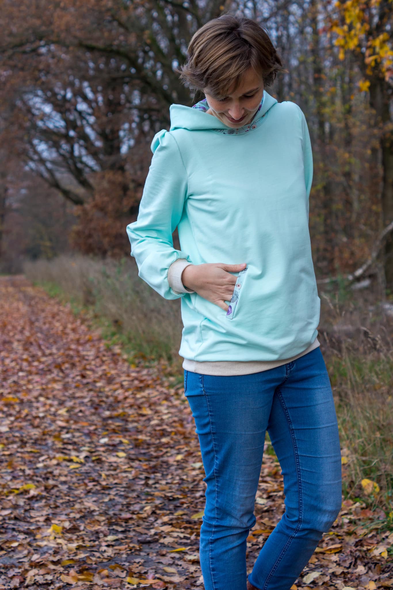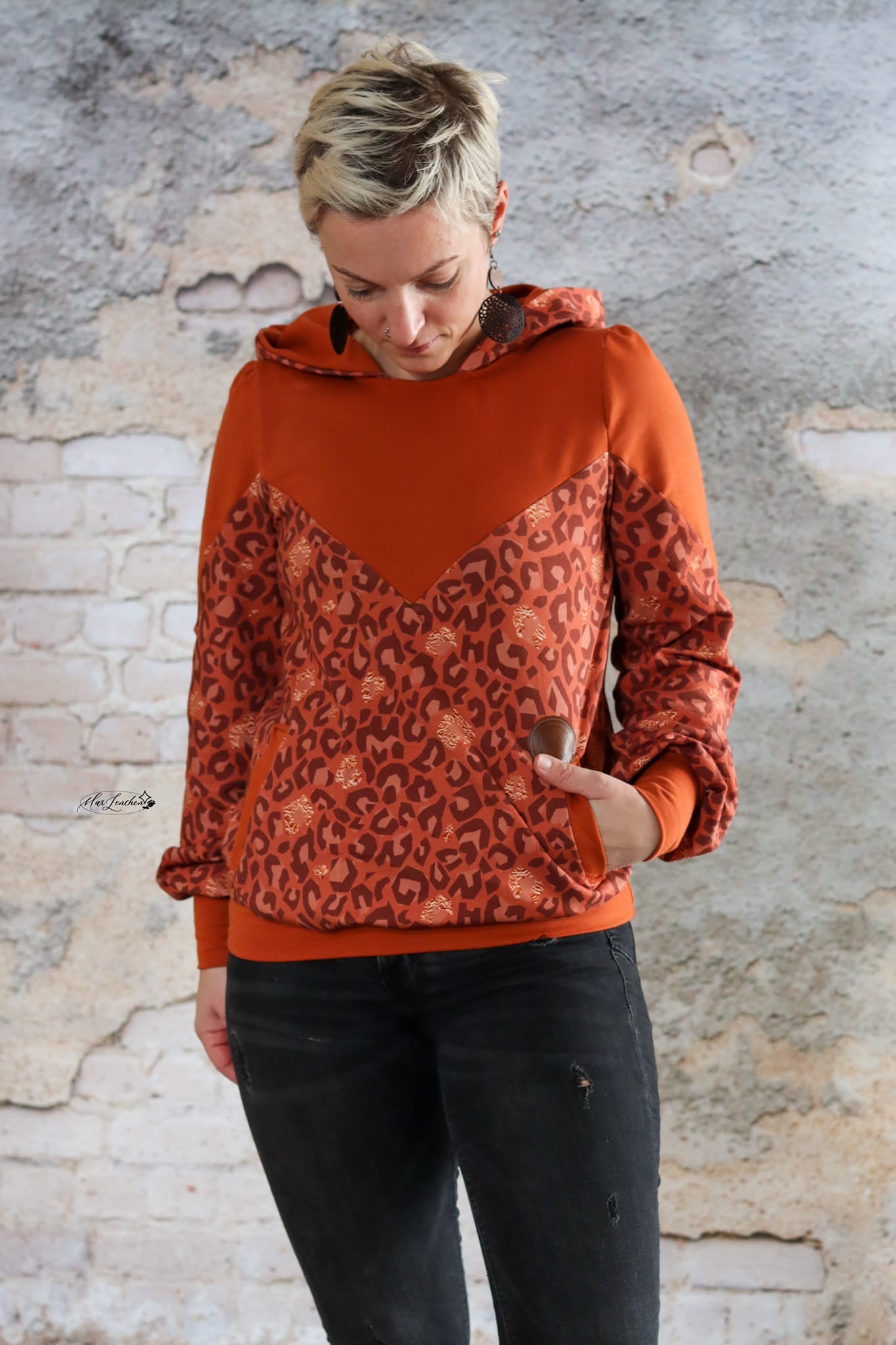 Auch die Kapuze ist hier etwas ganz Besonderes: Du kannst sie offen nähen und damit eine einzigartige Optik schaffen. Alternativ lässt sich der Hoodie auch ohne Kapuze als Rundhals- oder V-Neck-Sweater nähen.