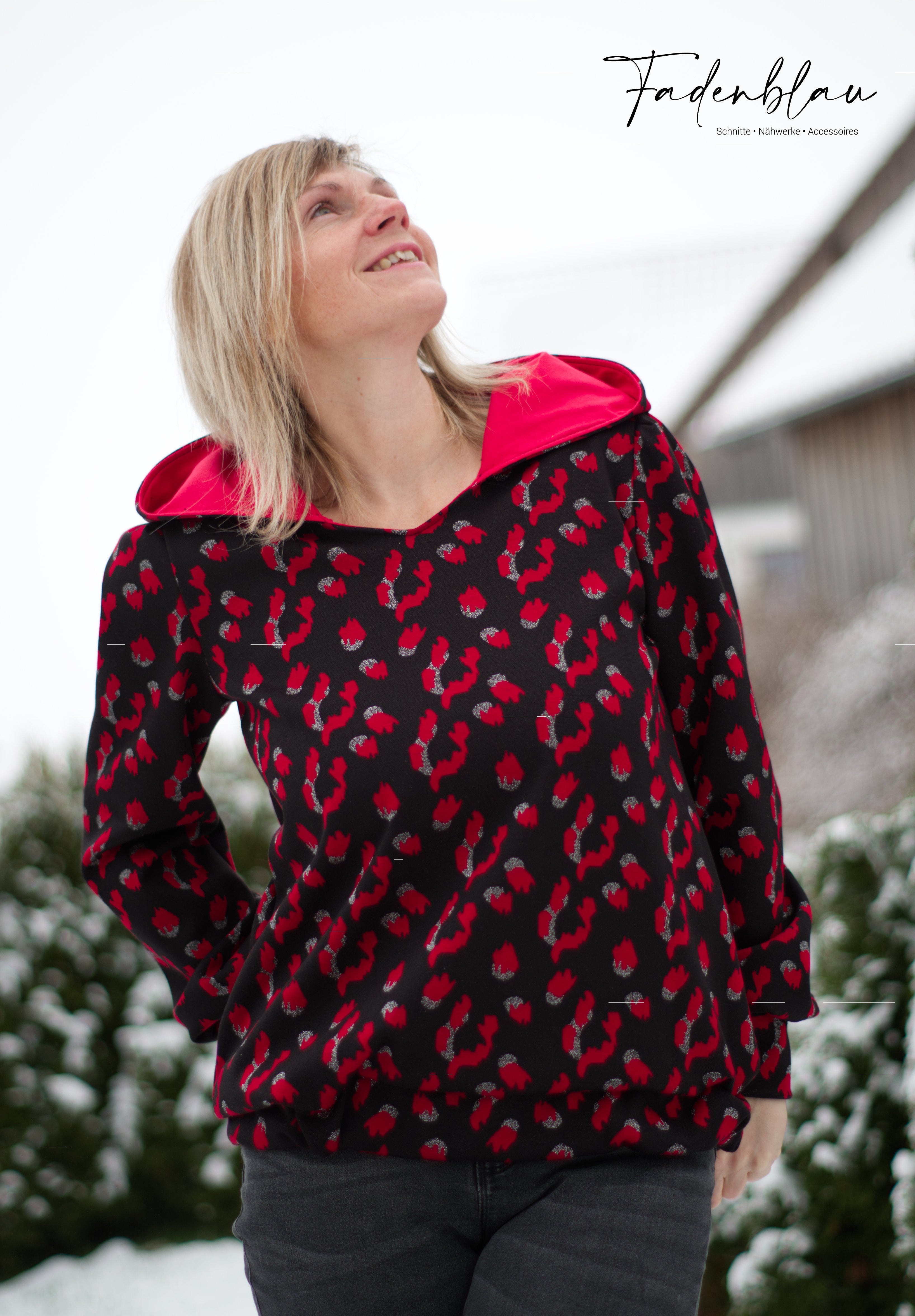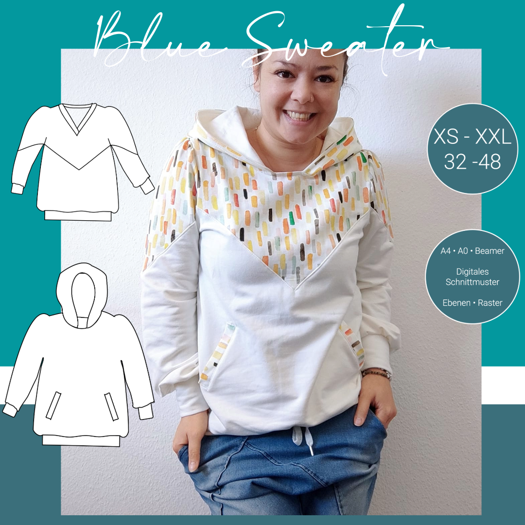 Du suchst einen Hoodie, der nicht nur gemütlich, sondern auch feminin und stilvoll ist? Dann ist der BlueSweater genau der richtige Schnitt für dich!