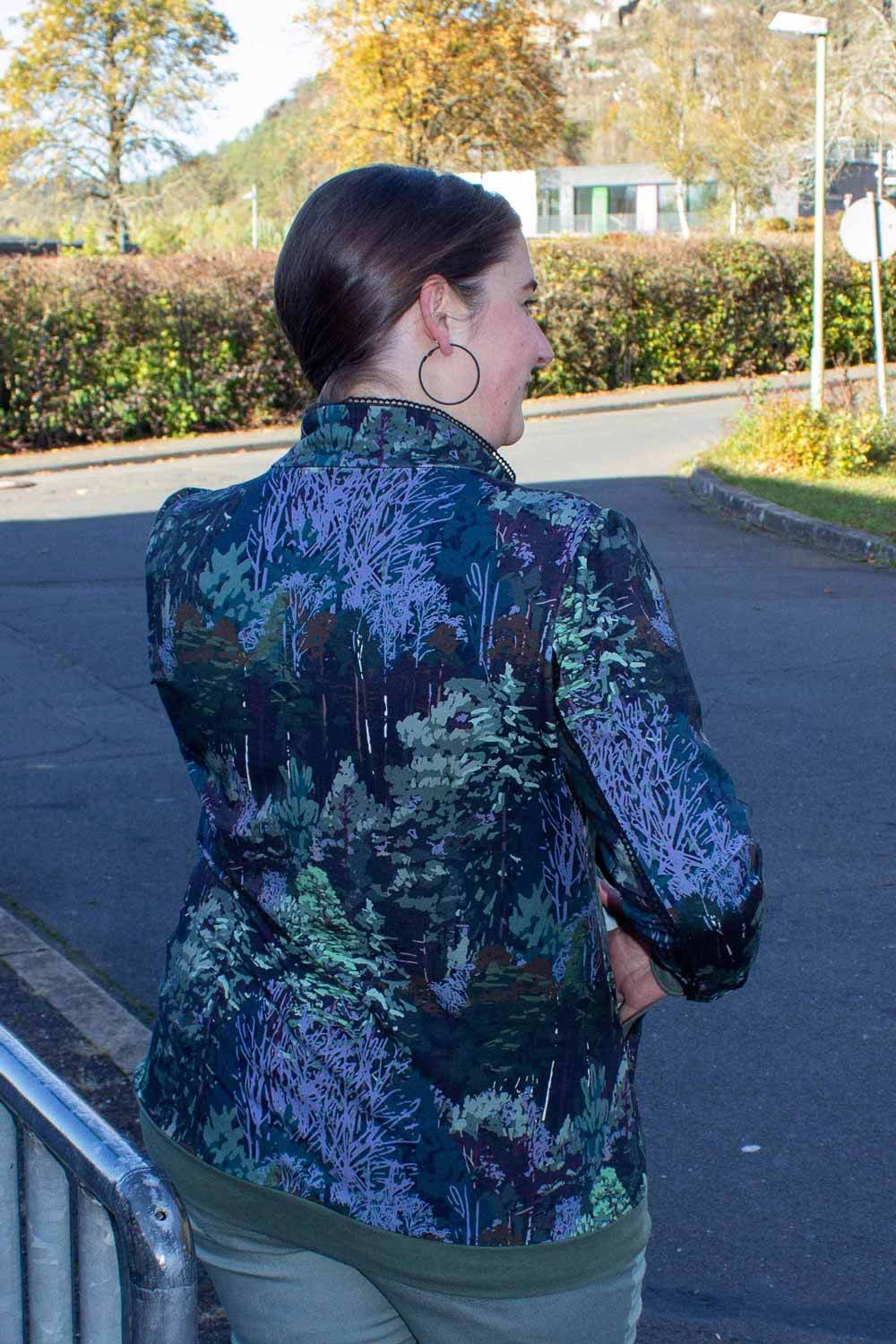 Du kannst mit der Basisversion bereits eine von vorne zweifarbige Variante nähen, jedoch findest du eine auf die Ärmelteilungen abgestimmte Rückenpasse und den entsprechenden Stoffverbrauch, sowie eine Anleitung zur Vorbereitung und Verarbeitung dieser Rückenpasse, für eine rundum zweifarbige Variante, ausschließlich im dazugehörigen ADD ON, dieses verlinke ich dir unten.