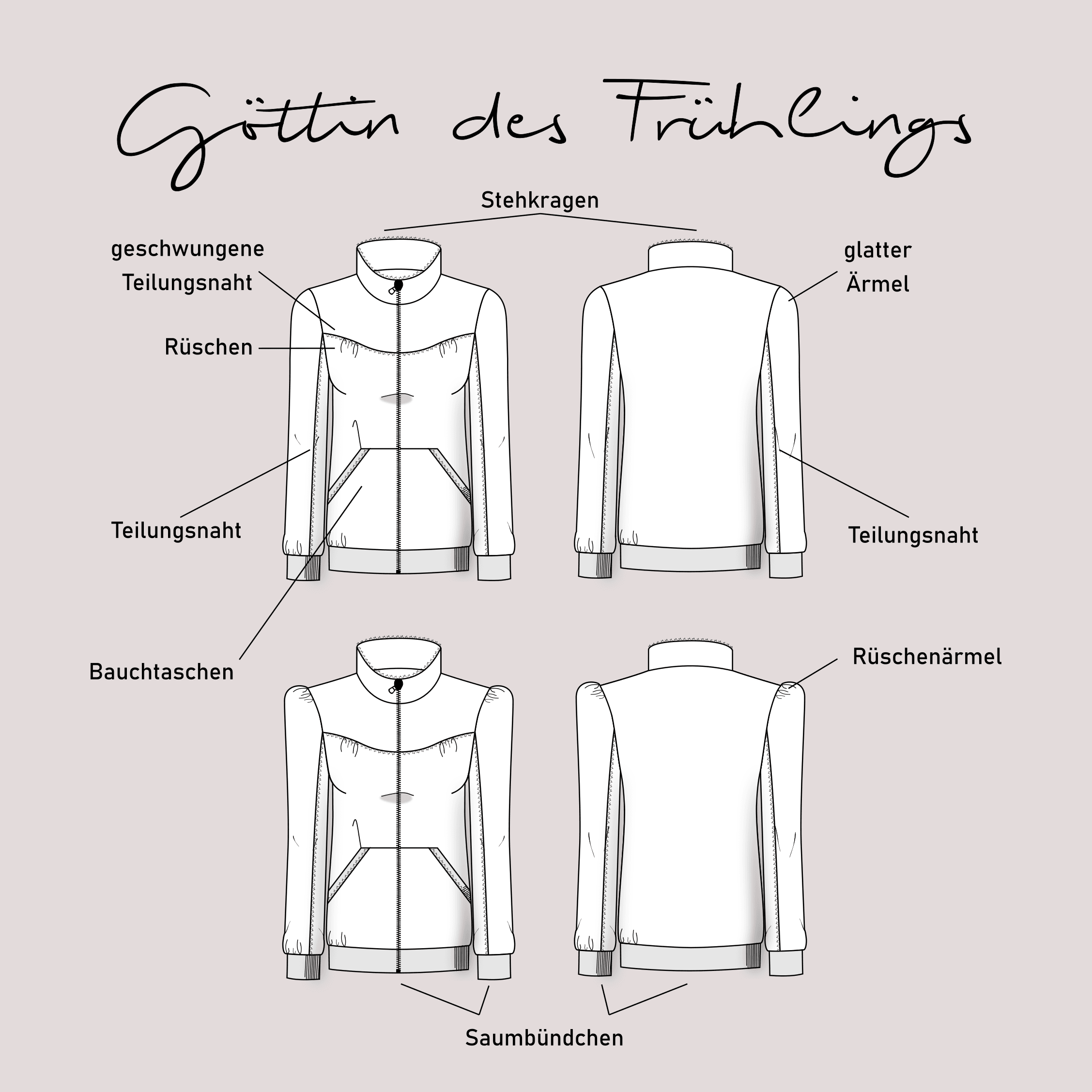 Schnittmuster Sweatjacke „Göttin des Frühlings“ Damen Gr. 32 - 62
