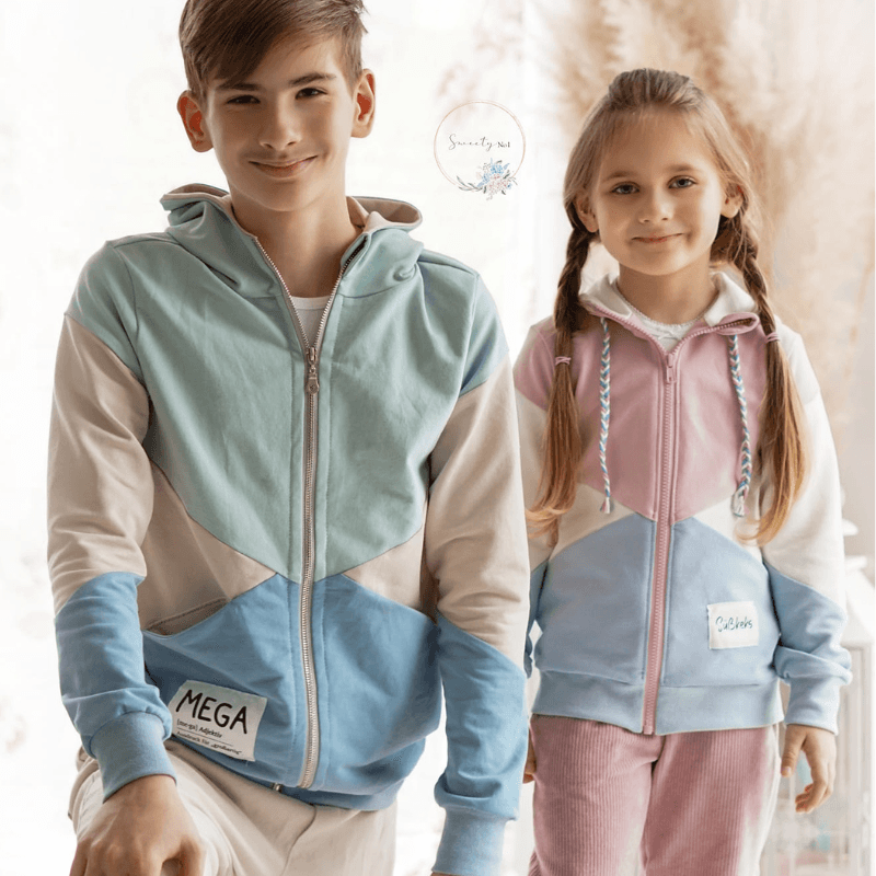 Das E-Book „Sweatjacke Mini Nurika“ ist eine digitale Nähanleitung mit Schnittmuster für Kinder.