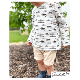 Das Schnittmuster „Vicky“ gibt es für die Größen 86–140, wodurch es ideal für Kinder und Teens geeignet ist.