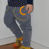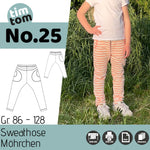 timtom No.25 ist ein Schnittmuster für eine bequeme Kinderhose aus Sweatstoff – gemütlich wie eine Jogginghose, aber mit einem etwas „angezogeneren“ Look. Die Hose ist locker geschnitten, mit schmal zulaufenden Hosenbeinen und einem Gummibund – perfekt für kleine Selbstanzieher.