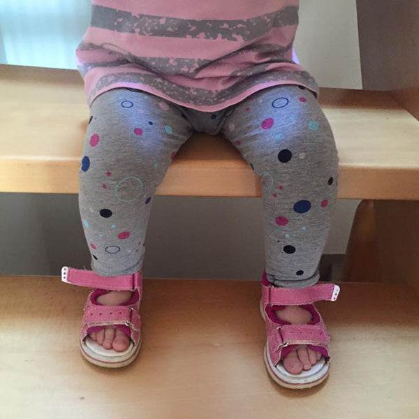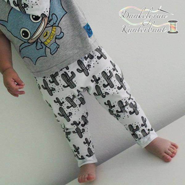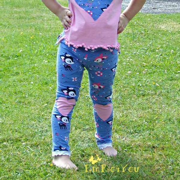 Die Nähanleitung enthält eine Anleitung zur Weitenanpassung, sodass die Leggings individuell an schmalere oder kräftigere Kinder angepasst werden kann.