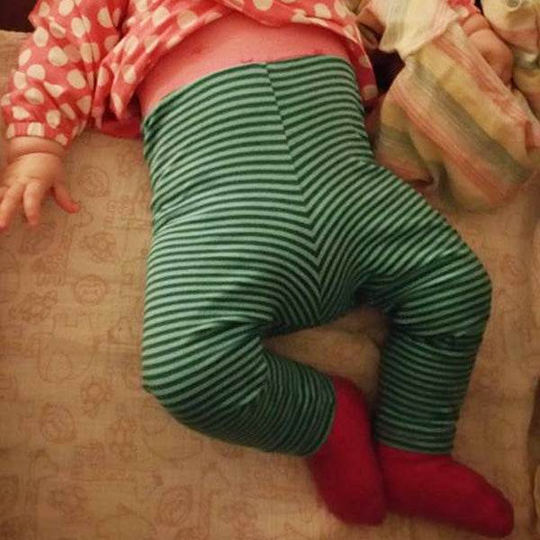 Dieses Schnittmuster ermöglicht eine schnell genähte, komfortable Leggings – perfekt für Babys und Kleinkinder im Windelalter.