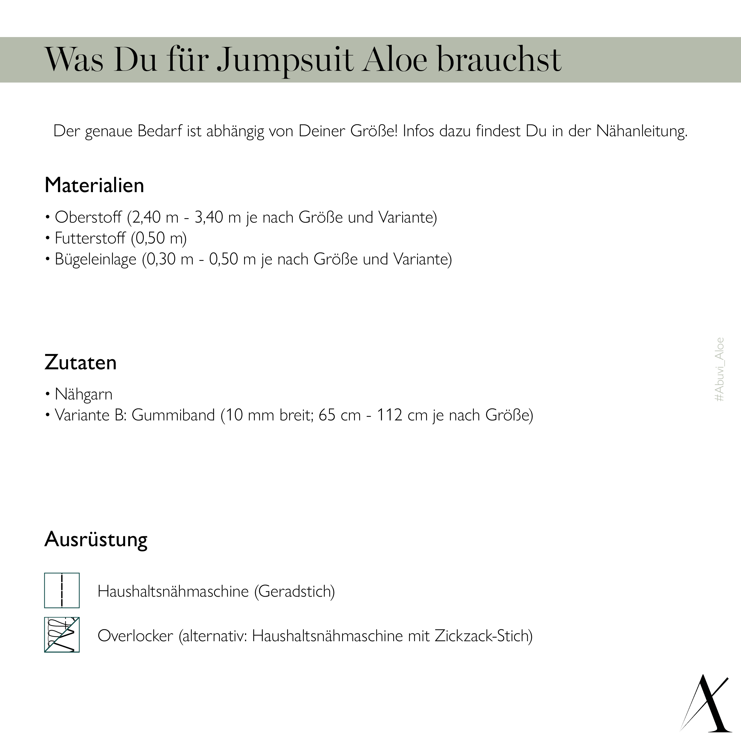 - Zur Fertigung benötigst Du eine Haushaltsnähmaschine (Geradstich/Zickzack) oder optionalerweise eine Overlock.