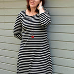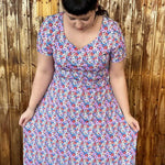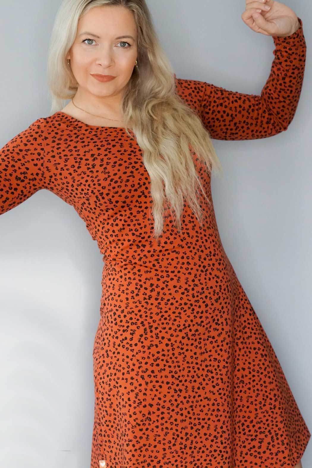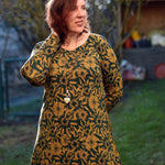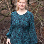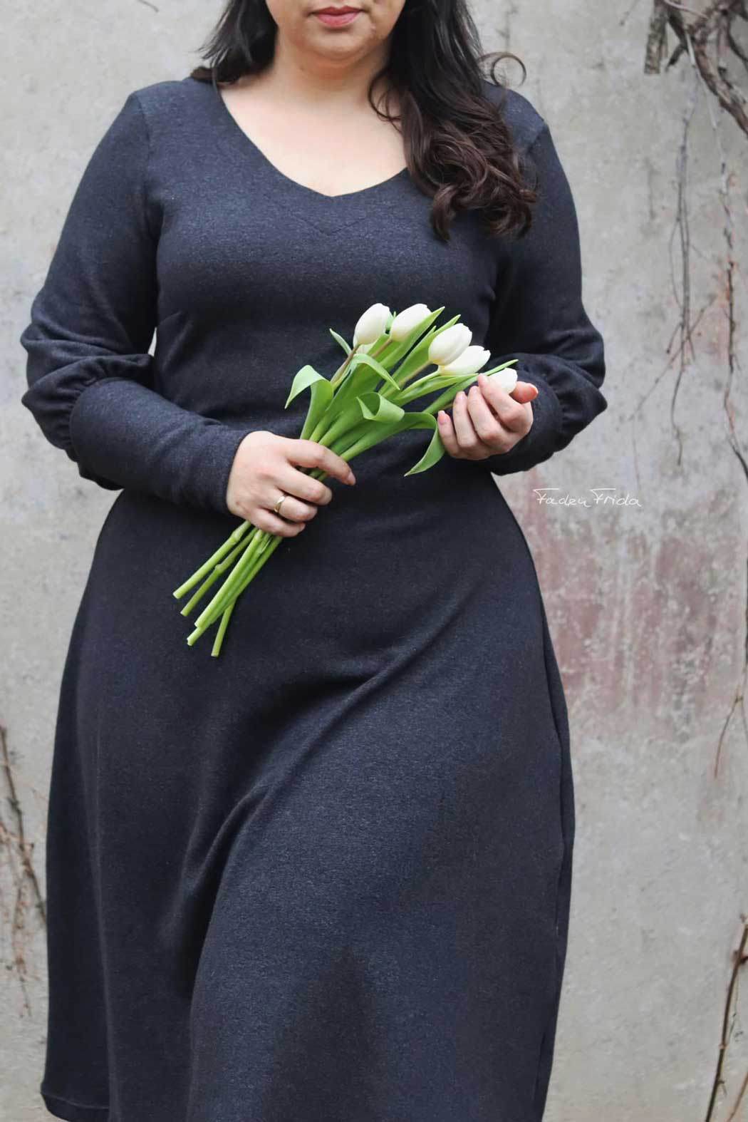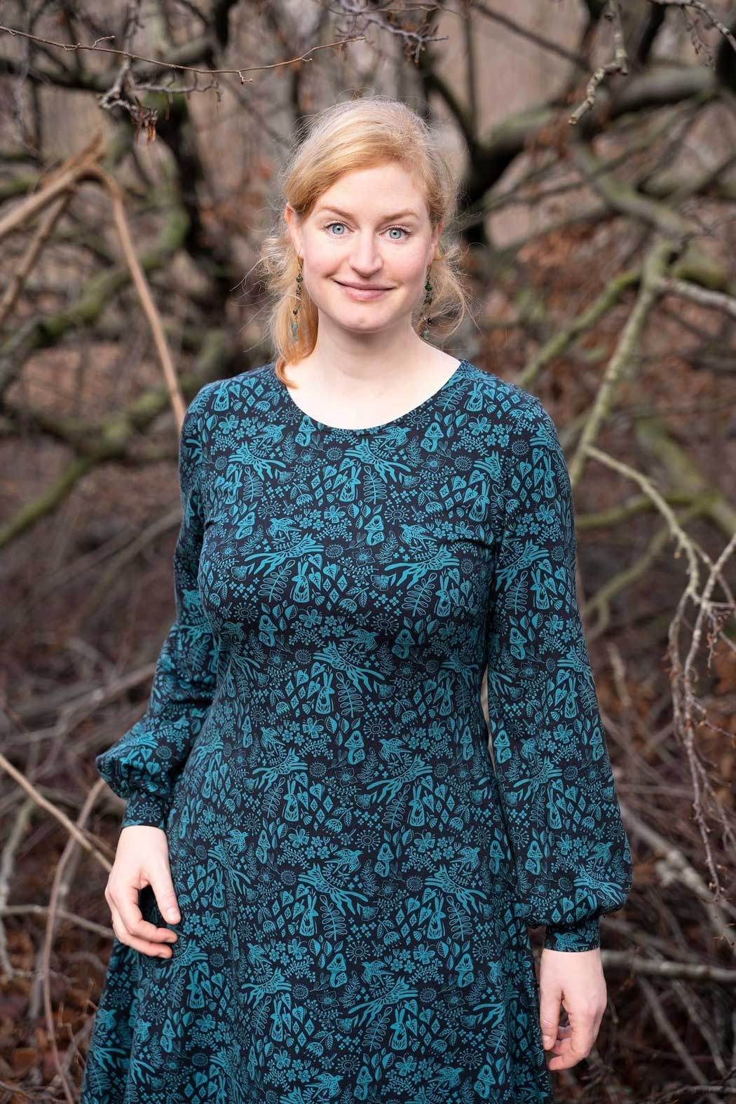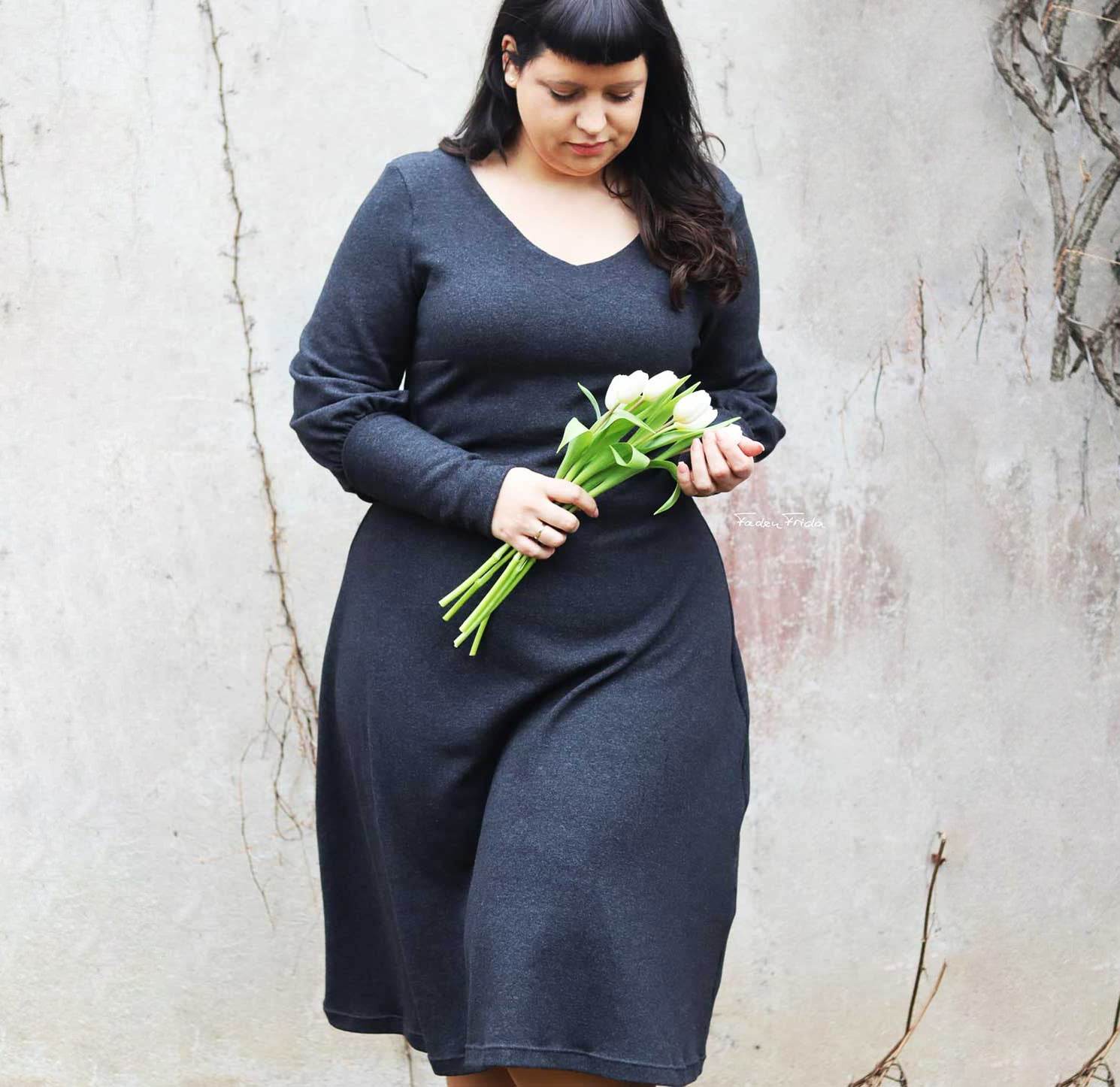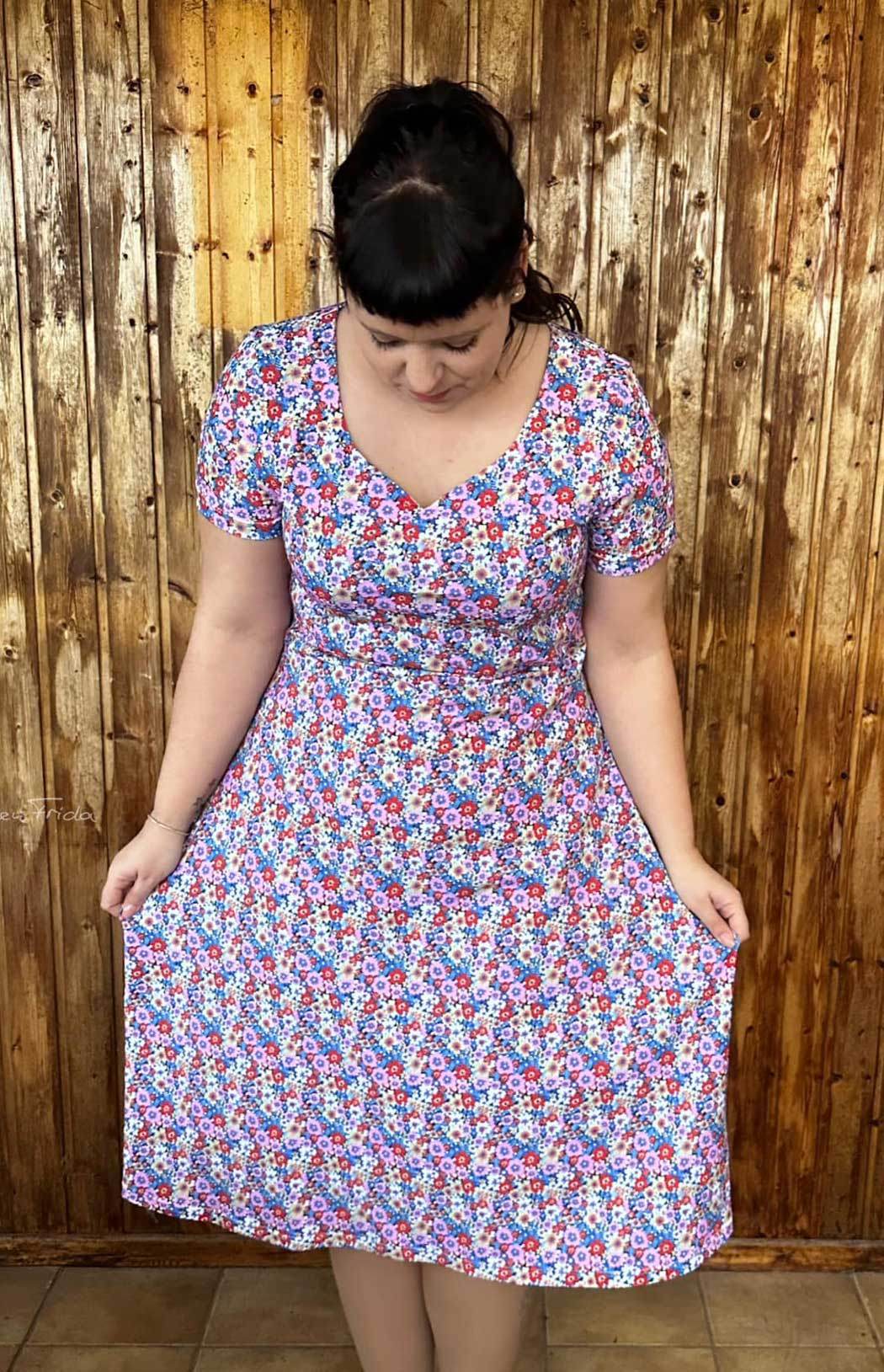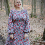 Floriana ist ein Varianten-Kleid mit figurnahem Oberteil, das in einen ausgestellten Rock übergeht. Da Vorder- und Rückteil ohne Unterteilung aus einem Stück bestehen, ist das Kleid auch für Panelstoffe geeignet. Die Brustabnäher in allen Größen sorgen für einen perfekten Sitz, optionale Rückenabnäher bringen den Schnitt auf Figur und lassen das Kleid in der Taille nach Wunsch enger anpassen. Der Schnitt enthält 3 Ausschnittvarianten sowie 6 Ärmelvarianten und ist damit vielseitig und wandelbar. Gekürzt kann es selbstverständlich auch als Tunika oder Oberteil genäht werden. Damit ist Floriana ein variantenreiches, wandelbares Kleidungsstück für das ganze Jahr.