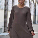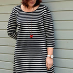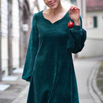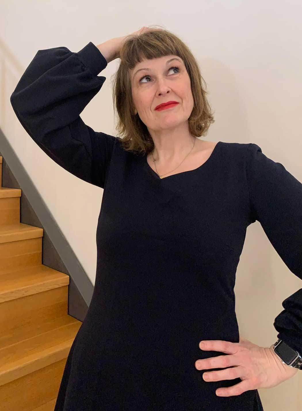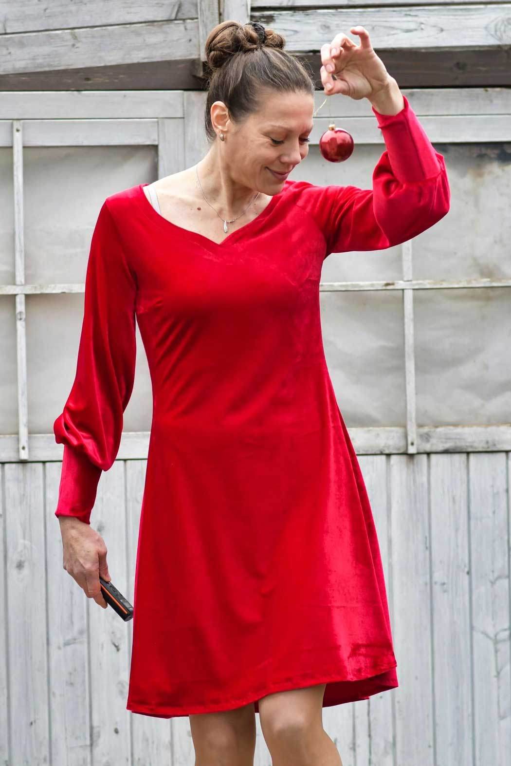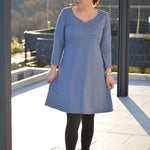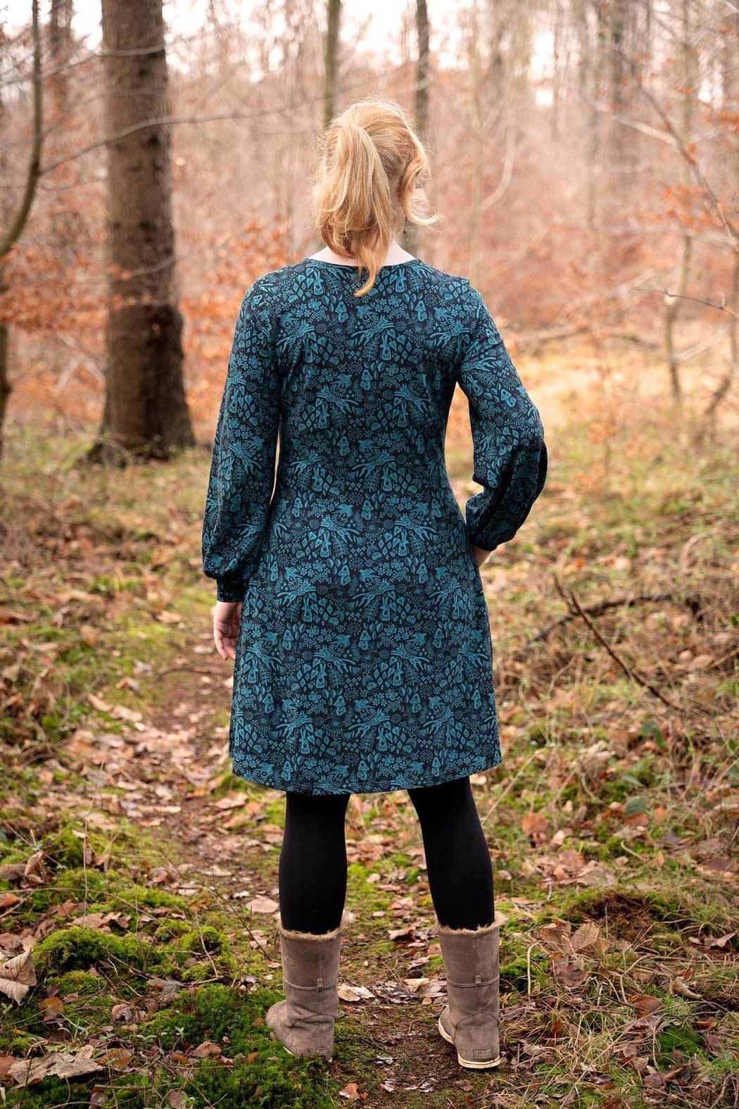 Schnittmuster zum Nähen eines Kleides mit verschiedenen Halsausschnitt- und Ärmelvarianten im Baukastensystem - geeignet für Panelstoffe, da Vorderteil- und Rückenteil ohne Naht auskommen.