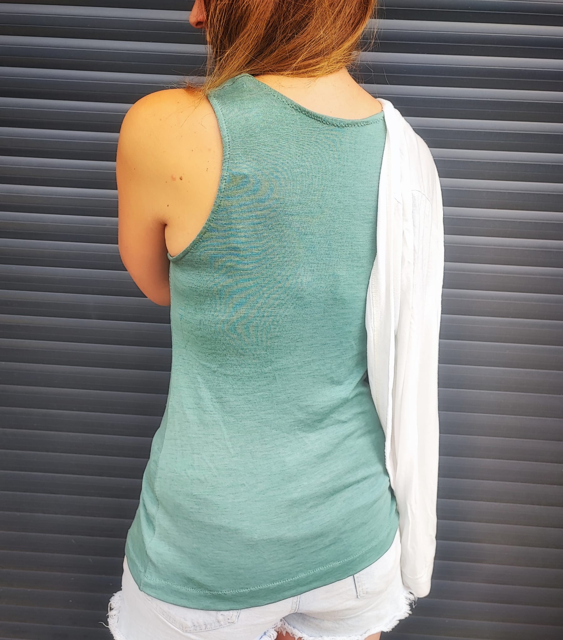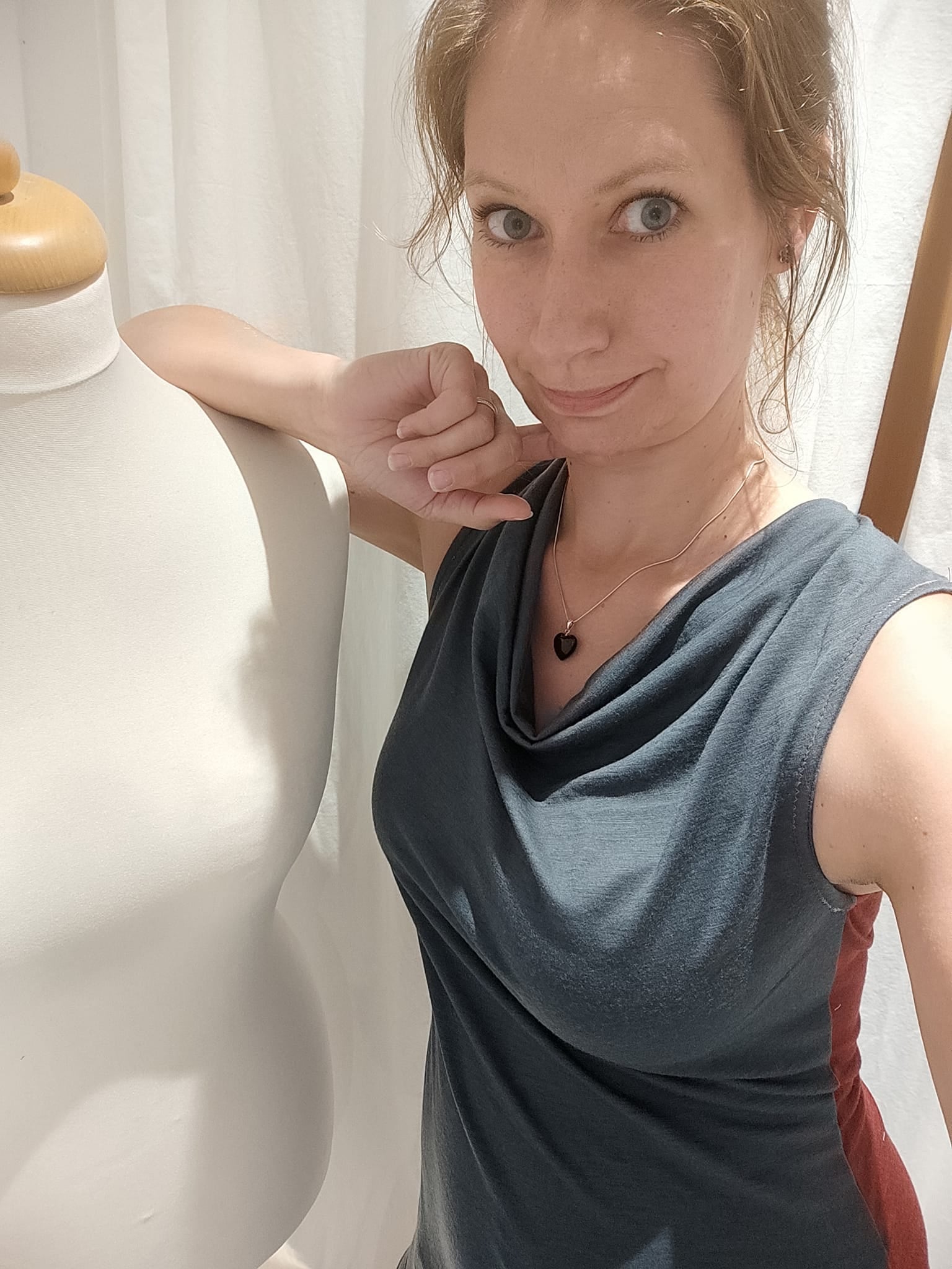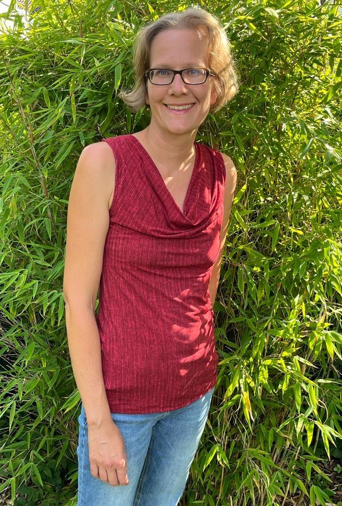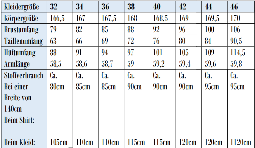 Ausgelegt ist der Schnitt auf hoch dehnbare Stoffe wie z.B. Wolle-Seide oder leichten Single-Jersey aus Wolle (Achtung: nicht alle Single-Jerseys sind gleich dehnbar), er lässt sich aber auch aus ähnlich dehnbaren Stoffen wie Viskose-Jersey oder dergleichen wunderbar nähen. Bei Baumwoll-Jerseys oder anderen Stoffen, die eine geringere Dehnbarkeit mitbringen, empfiehlt es sich, das Schnittmuster mindestens eine Nummer breiter zuzuschneiden (ggf. sogar zwei Nummern).