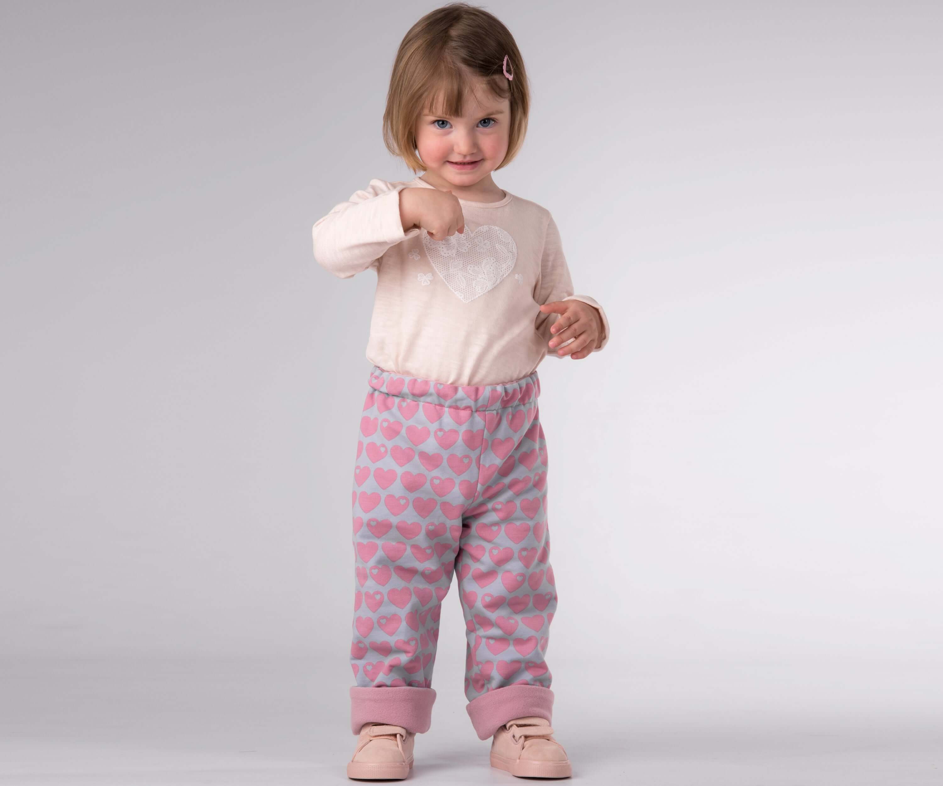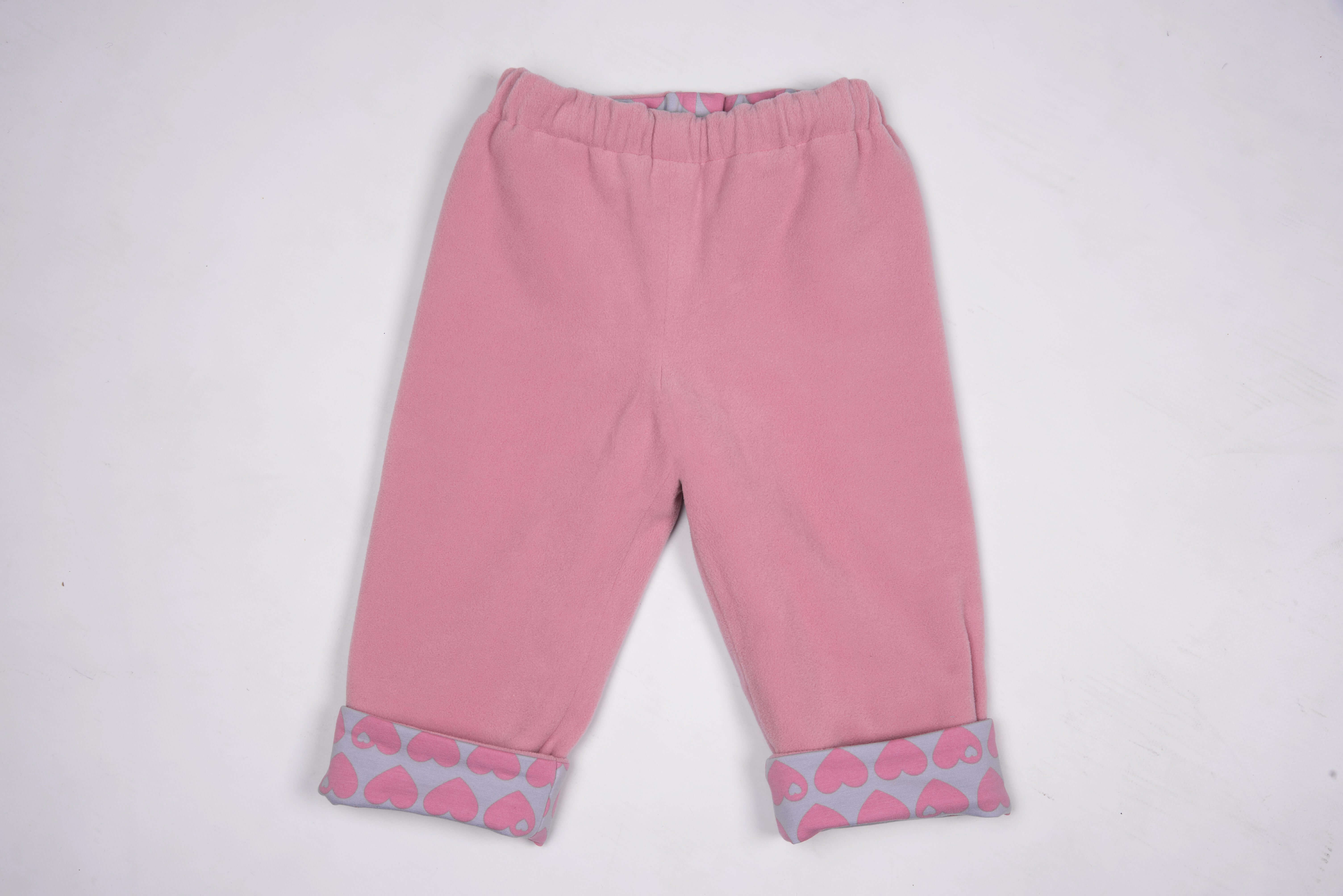 Die Hose kann aus Nicki, Jersey, leichtem Fleece, Baumwollstoff oder Babycord genäht werden. Für das Futter empfehle ich Jersey oder Baumwollstoff – gern auch in Kontrastfarben.