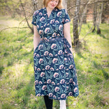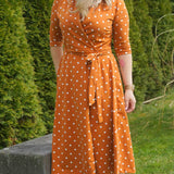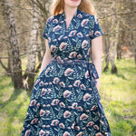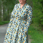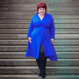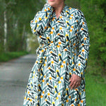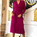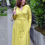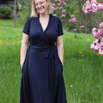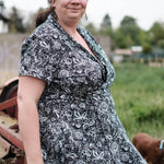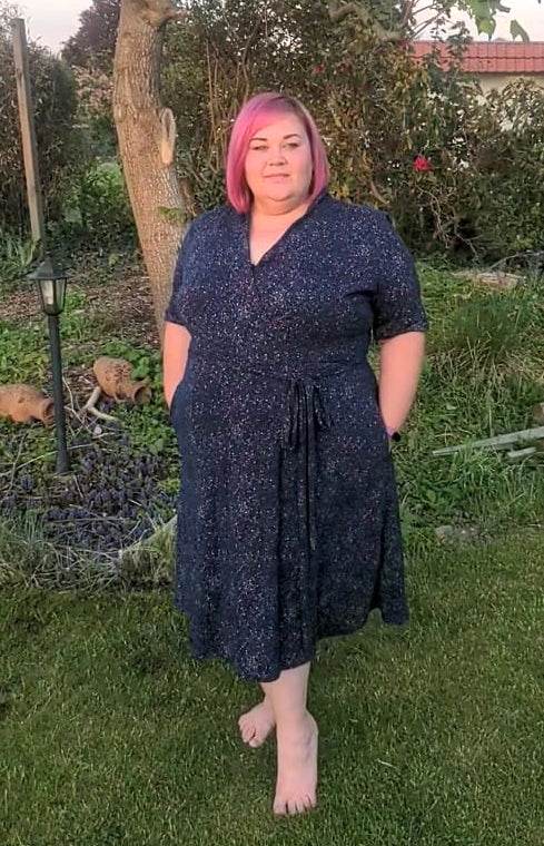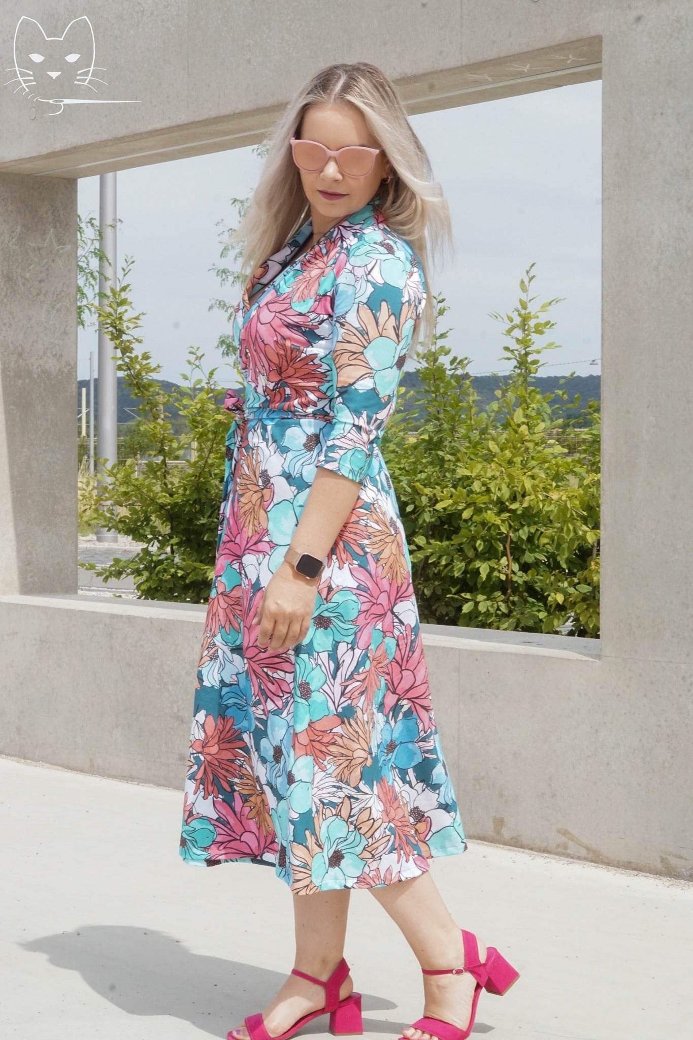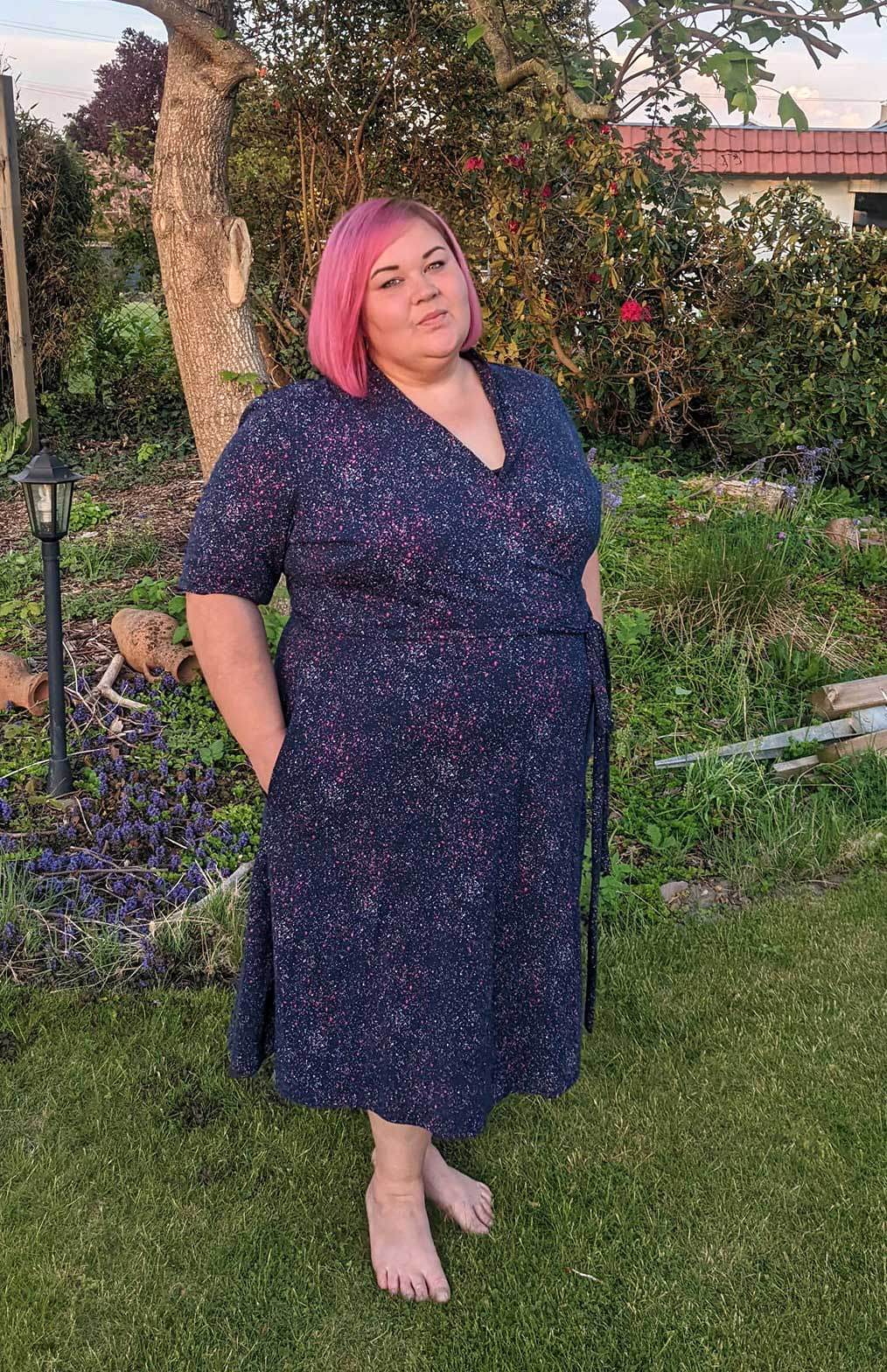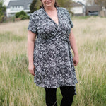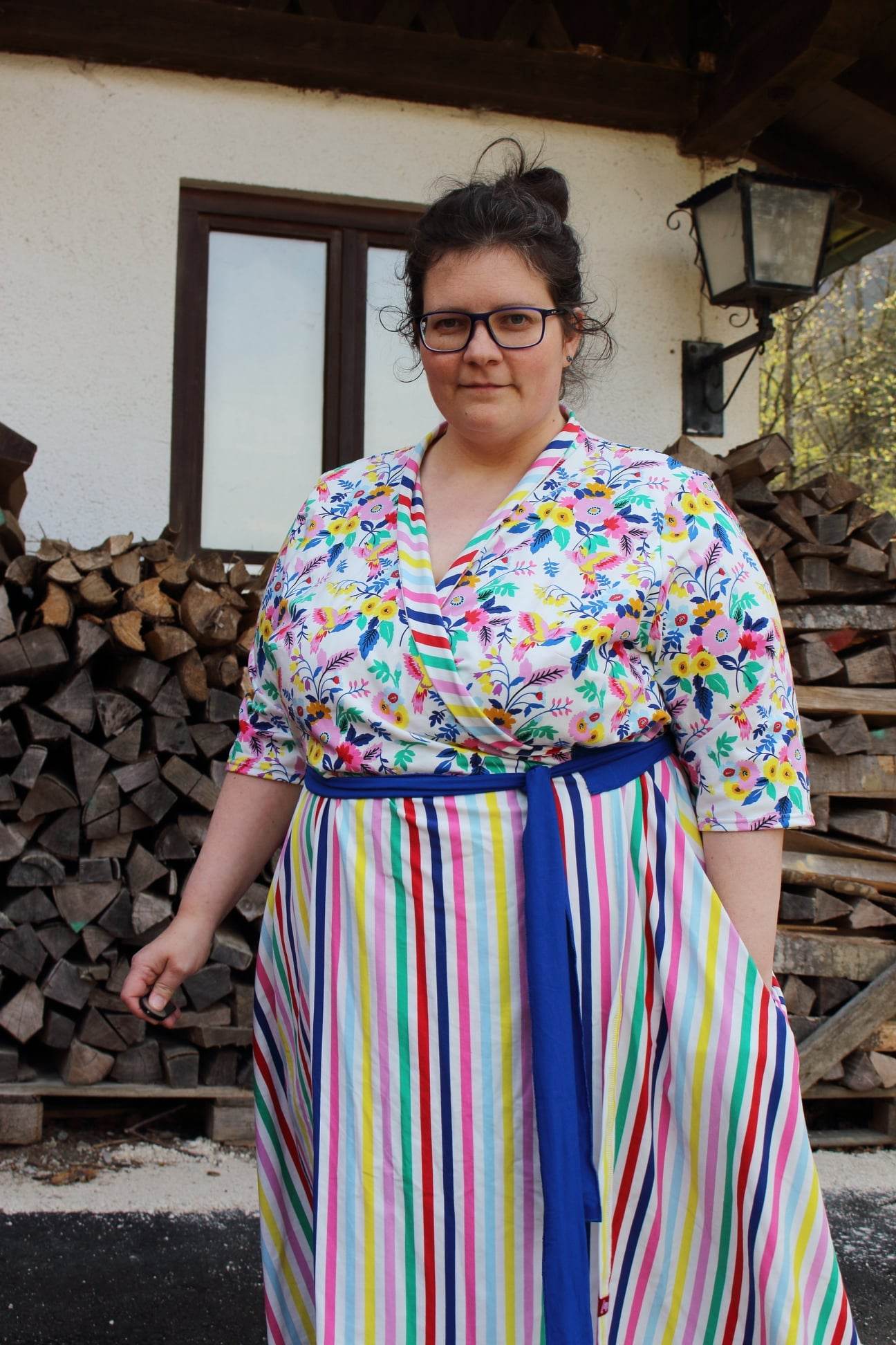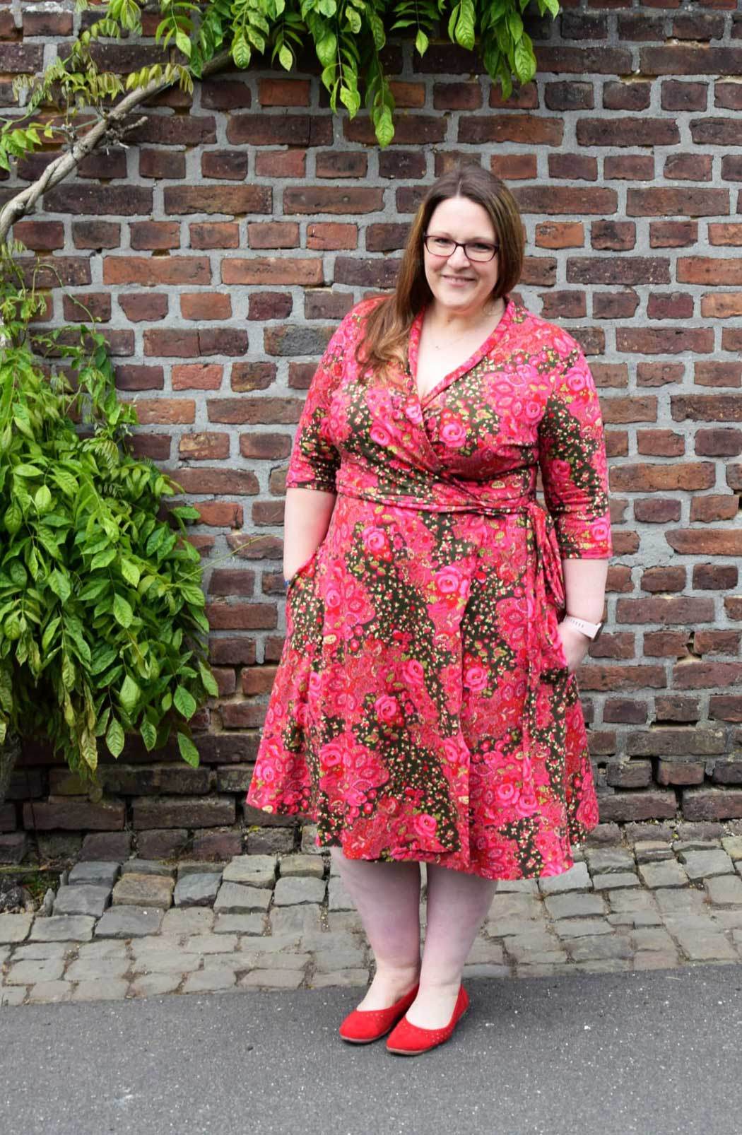 Aurora ist ein schönes weibliches Wickelkleid das an der Brust figurnah sitzt und ab der Taille ausgestellt fällt. Die Vorderteile des Oberteils liegen doppelt (gefüttert). Der schöne Schalkragen betont das Dekolleté und kann offen oder geschlossener getragen werden. Das Schnittmuster enthält zwei Rocklängen, drei Ärmellängen sowie seitliche Nahttaschen. Zum Vernähen eignen sich weiche, dehnbare Stoffe, wie Jersey, Viskosejersey, Punta di Roma, dünner Sommersweat etc.