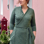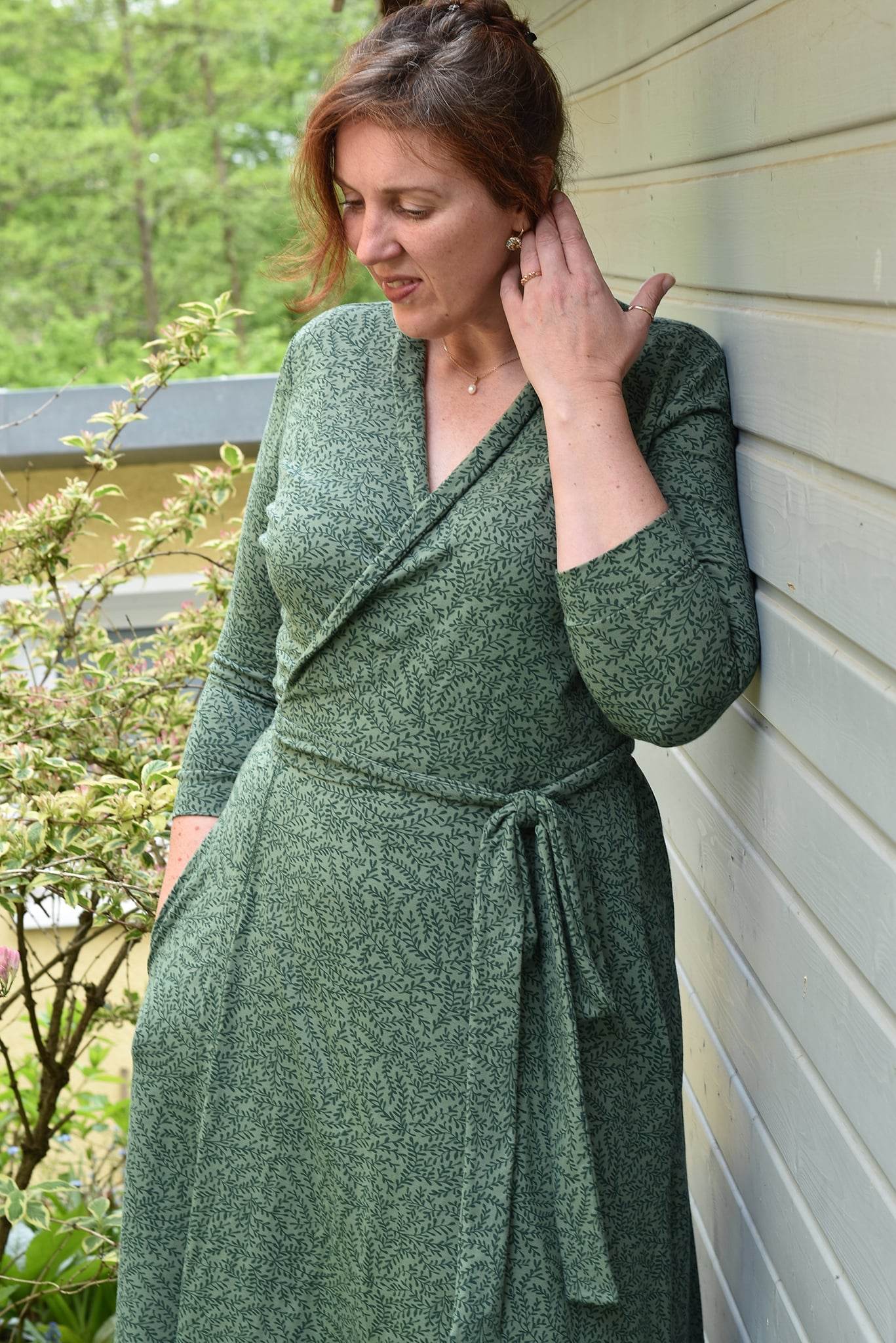 Schnittmuster zum Nähen eines Wickelkleides mit Schalkragen und seitlichen Nahttaschen