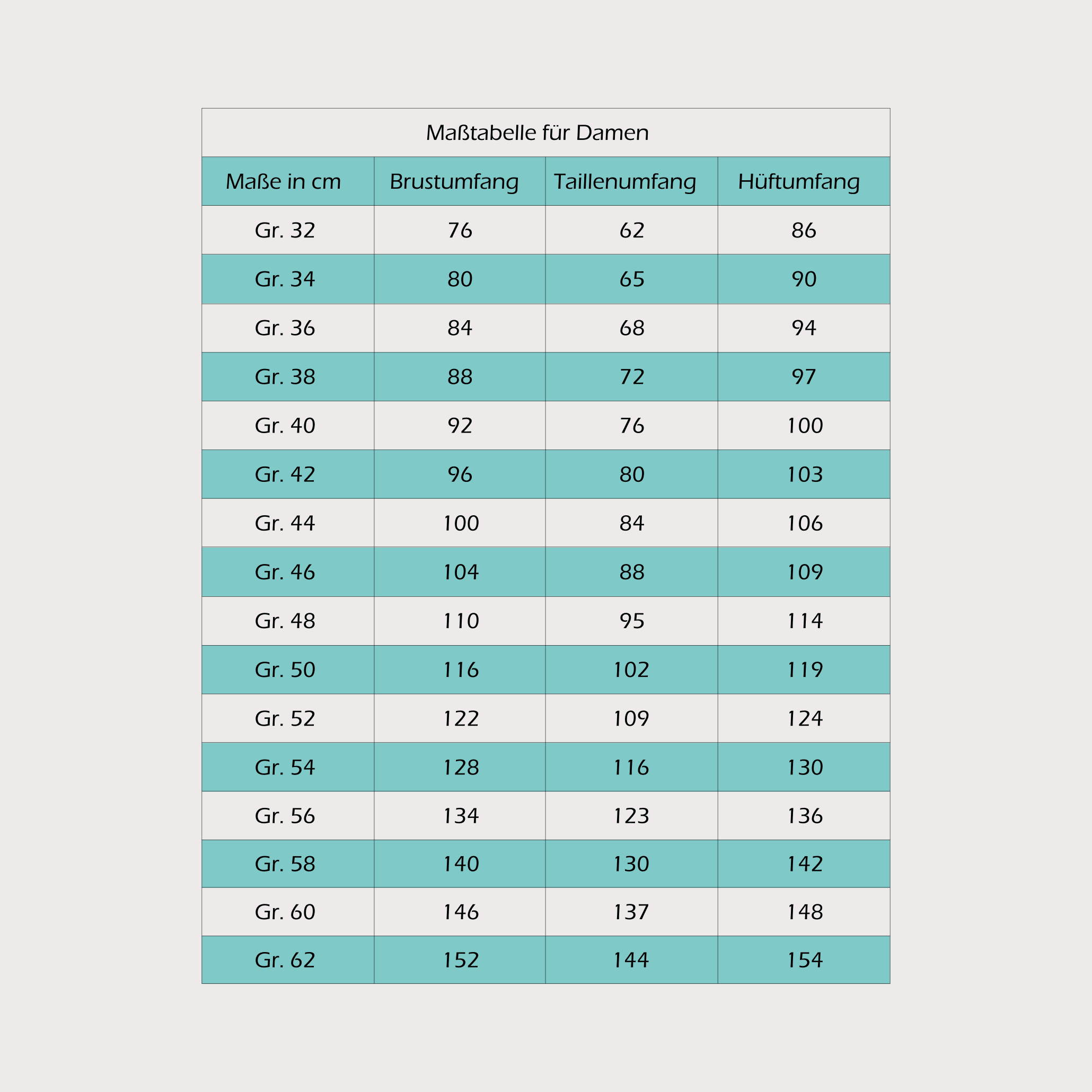 • Im Schnittmuster enthalten sind die Damengrößen 32 - 62.