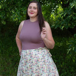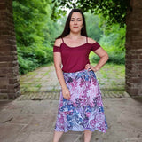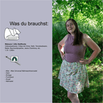 • Als Material für den Rock eignen sich Viskosewebware, Crêpe de Chine, Satin, Tencelwebware, Batist, Baumwollpopeline, Jeans Chambray, etc. (je nach Variante besser oder schlechter geeignet)